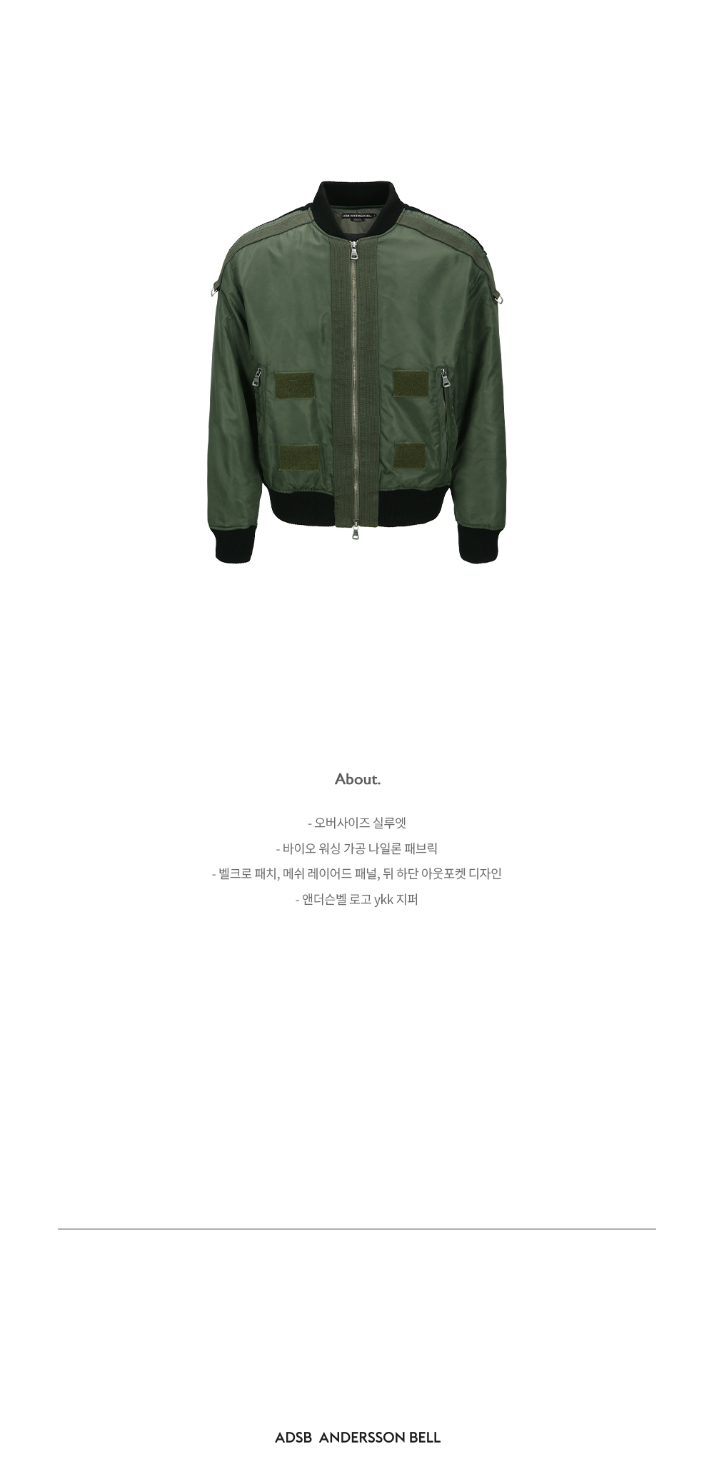 ADSB 앤더슨벨 플라이트 레이어드 워시드 봄버 재킷 카키
