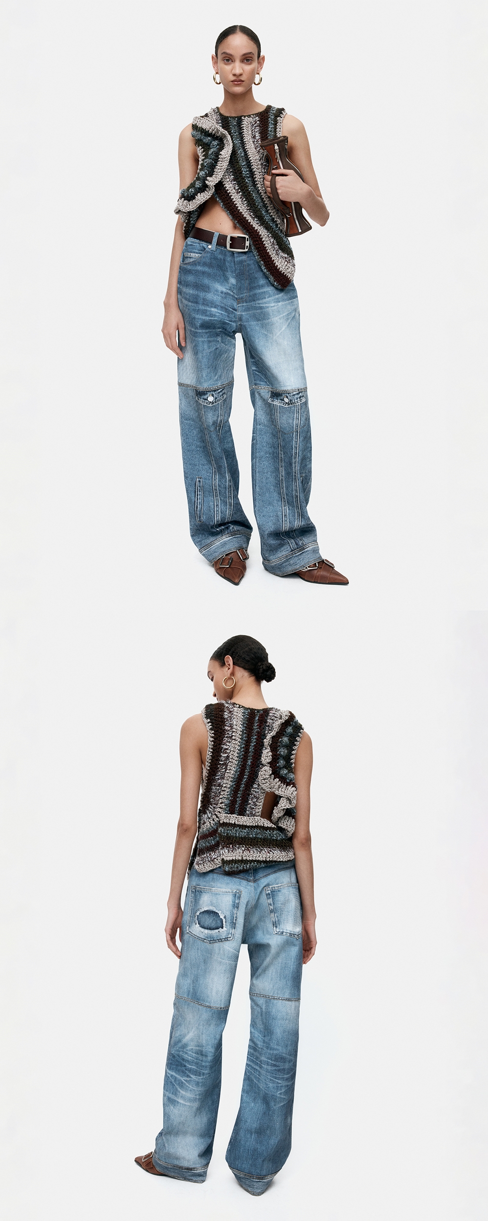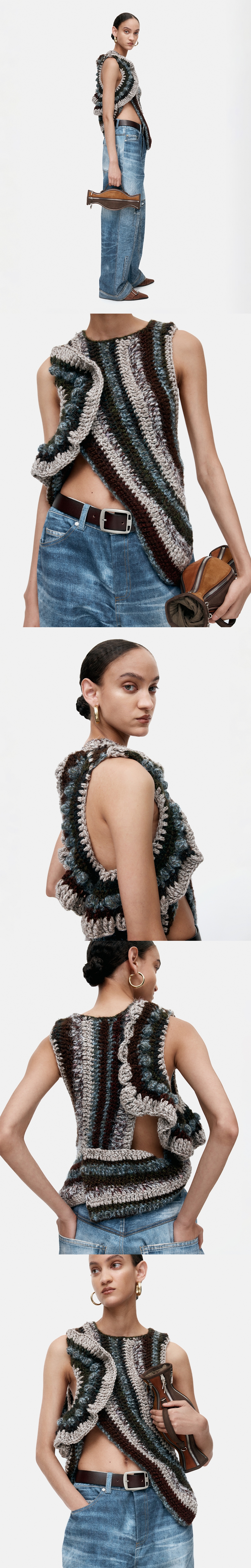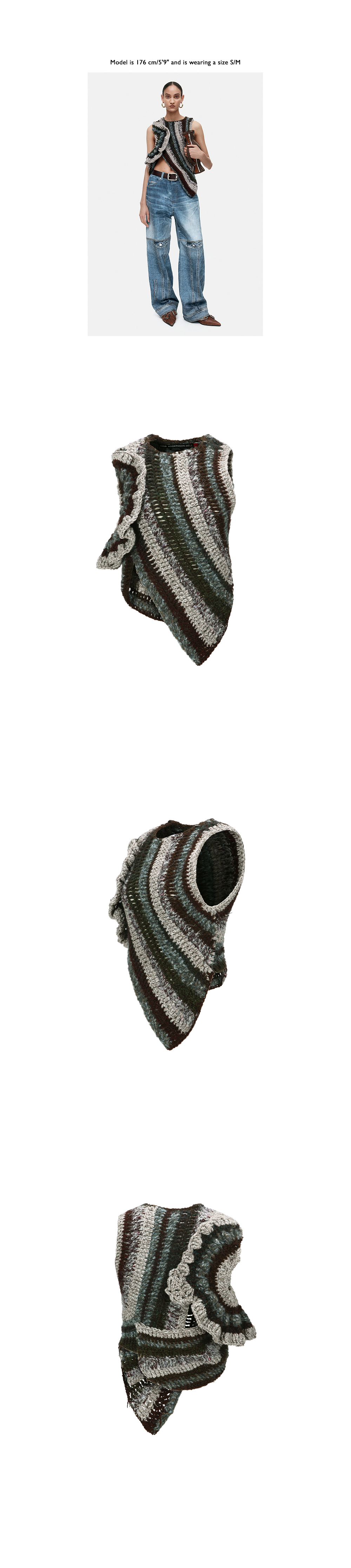 ADSB 앤더슨벨 오크베리 프릴 라운딩 핸드 니트 톱 브라운 블루