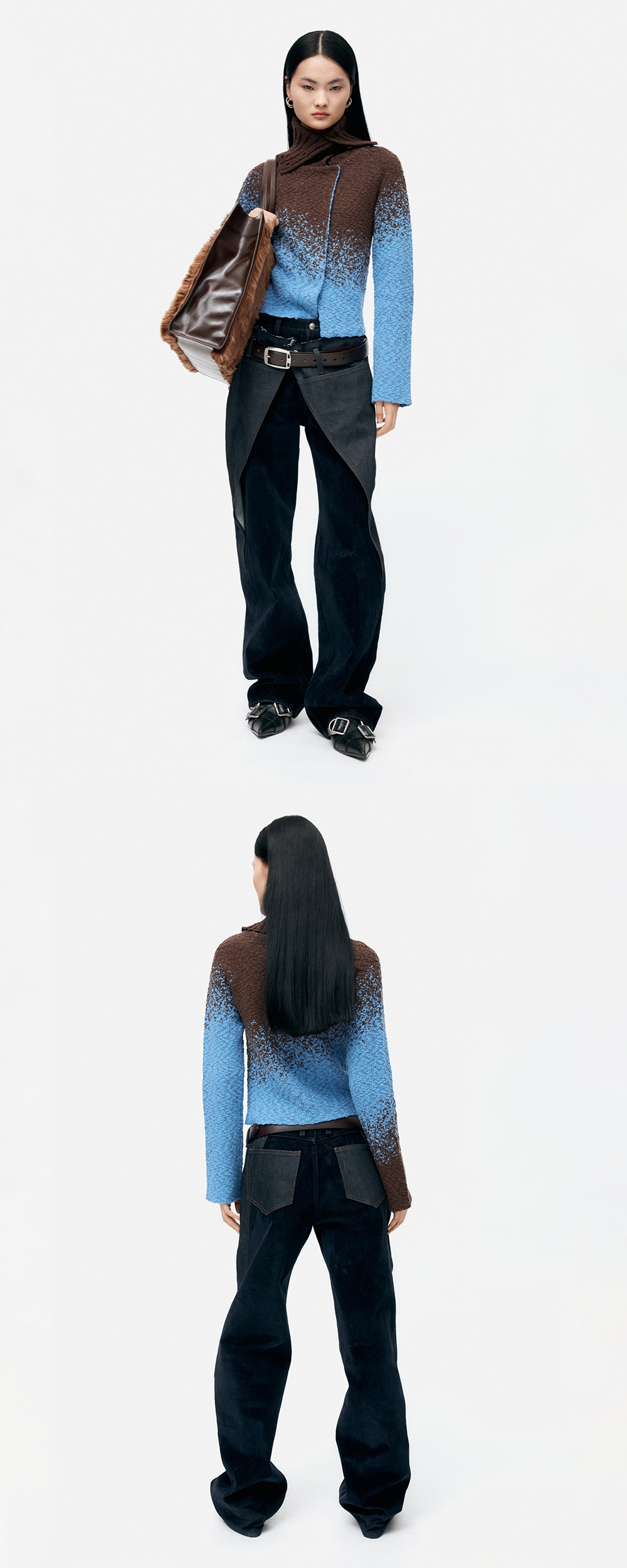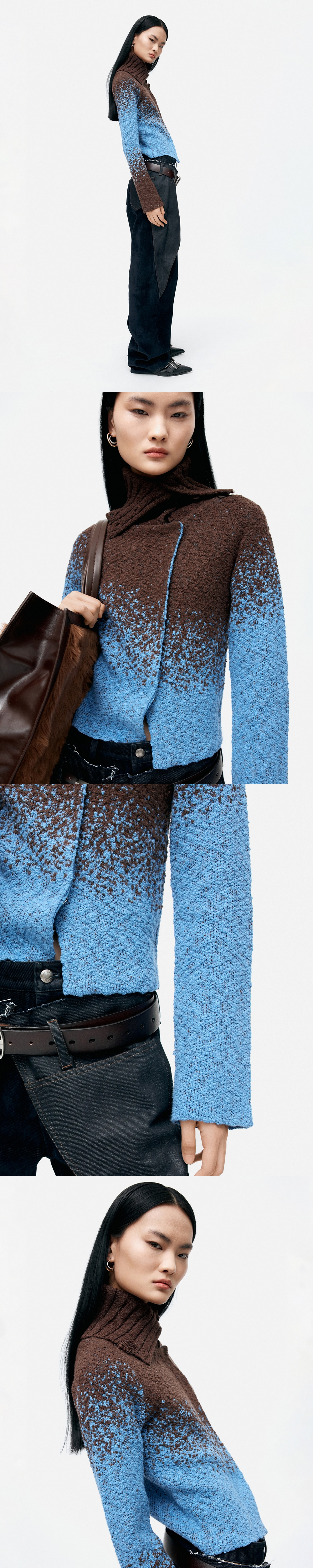ADSB 앤더슨벨 플로우 자카드 쇼트 가디건 블루 브라운