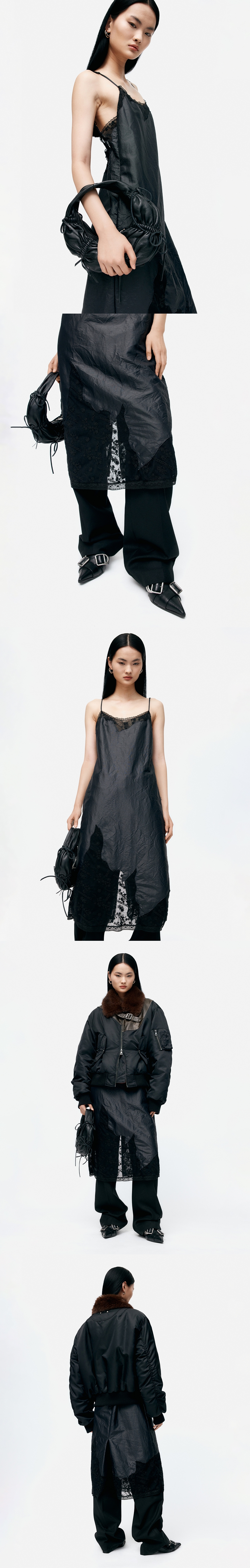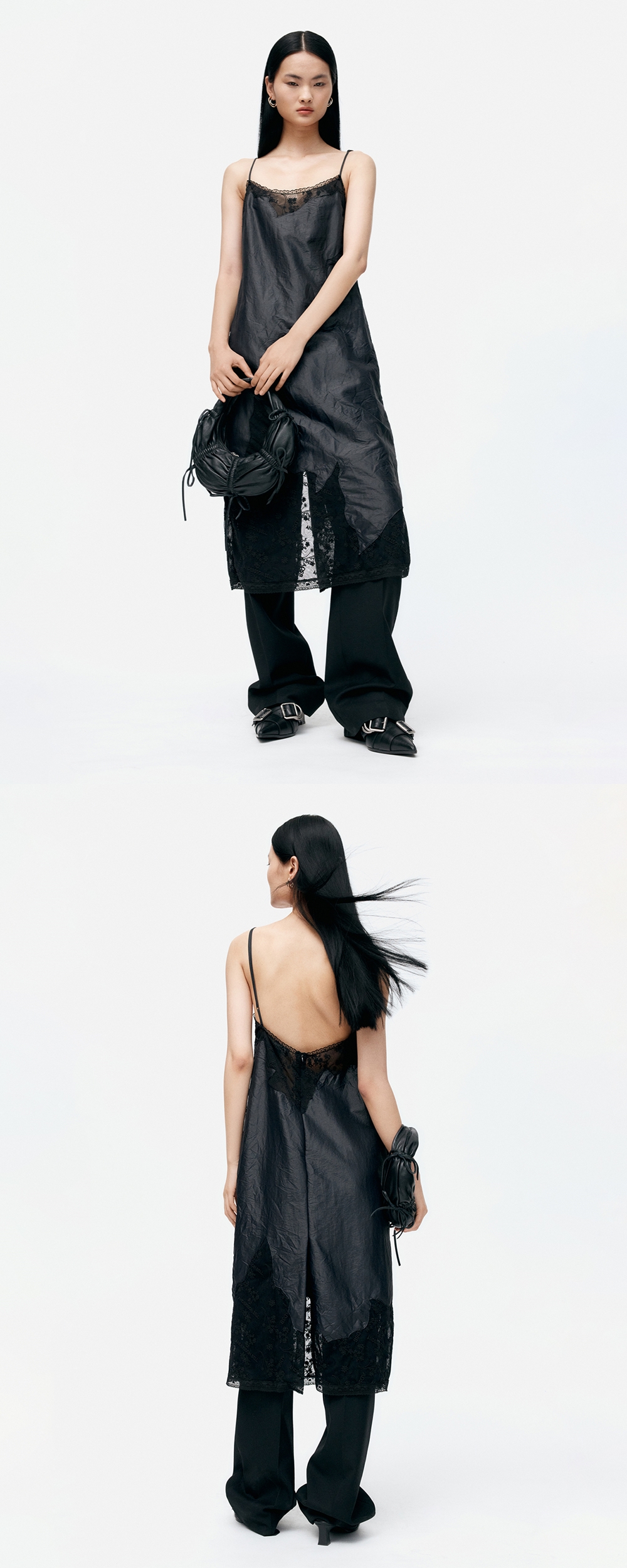 ADSB 앤더슨벨 레이스 패치워크 슬립 드레스 블랙