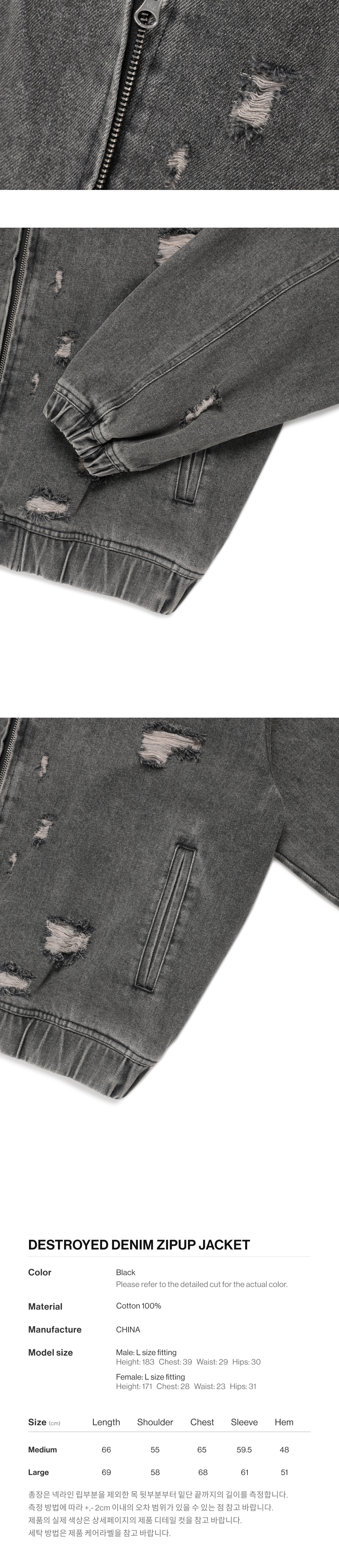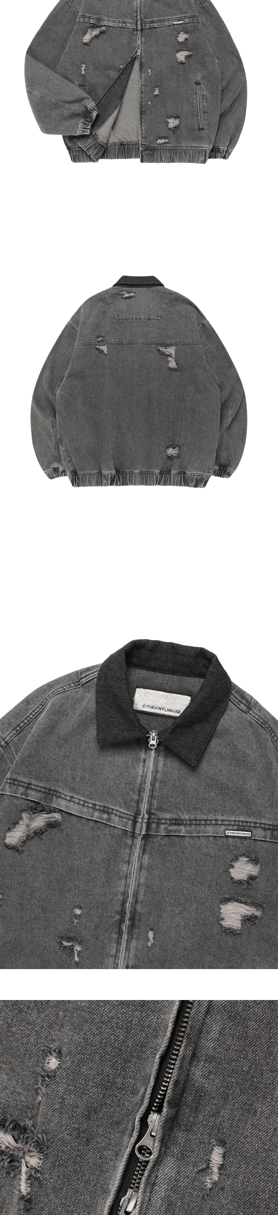 더바이닐하우스 디스트로이드 데님 집업 자켓 블랙
