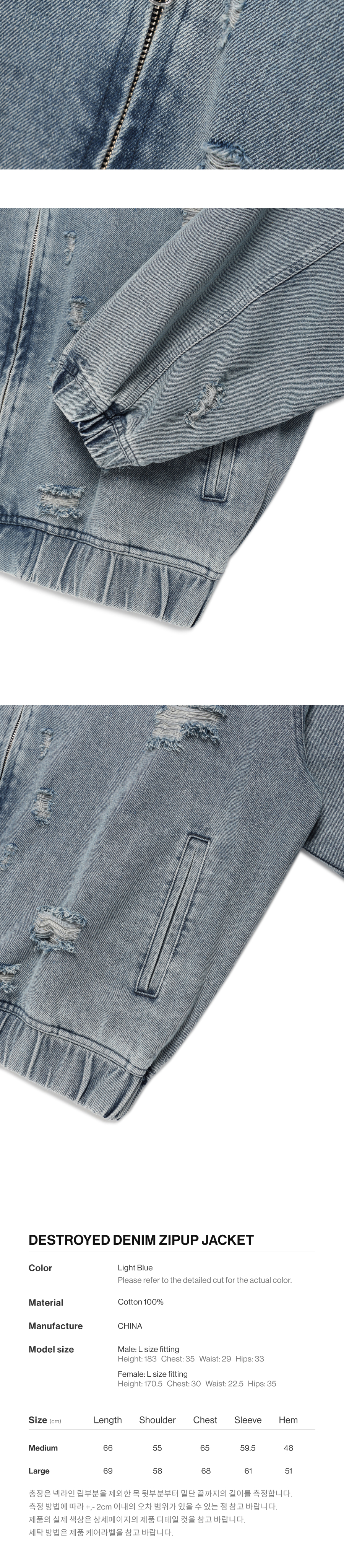 더바이닐하우스 디스트로이드 데님 집업 자켓 라이트 블루