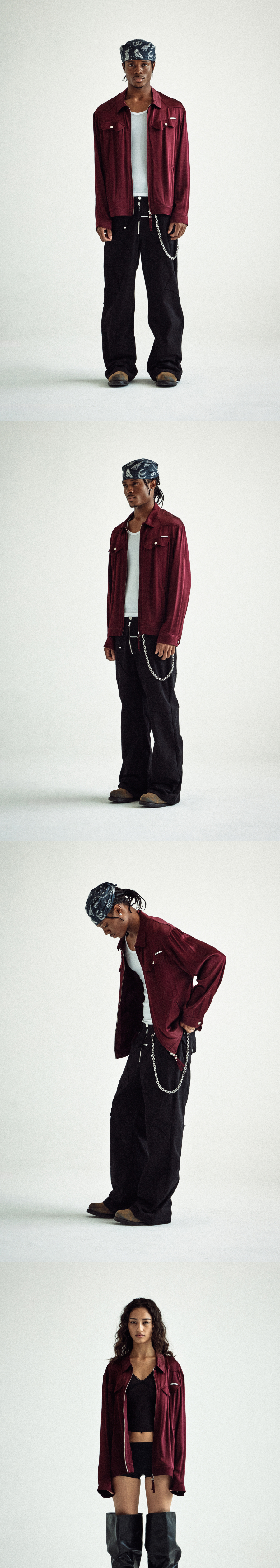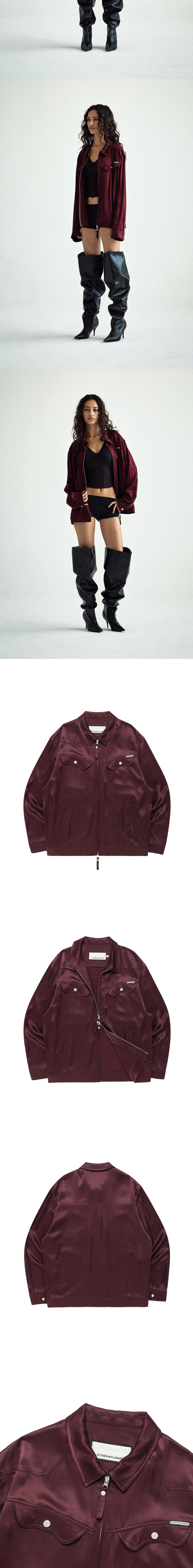더바이닐하우스 새틴 카라 싱글 자켓 버건디