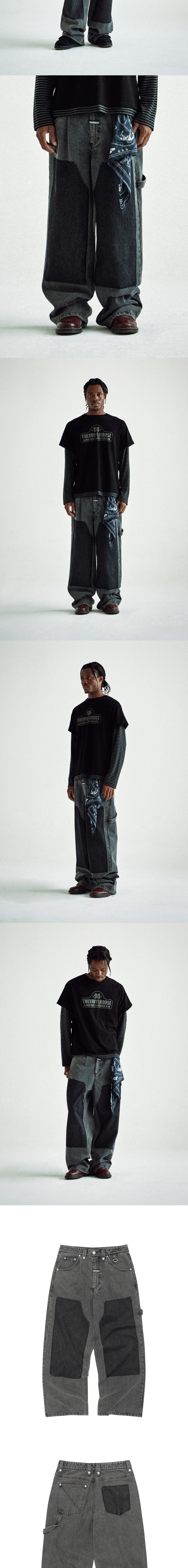 더바이닐하우스 더블 니 데님팬츠 블랙