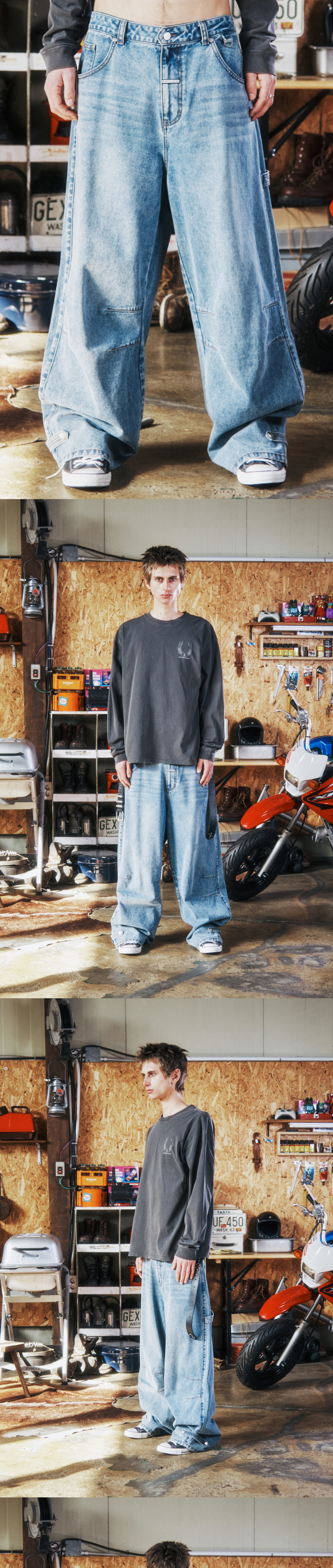 더바이닐하우스 베이직 와이드 데님 팬츠 라이트블루
