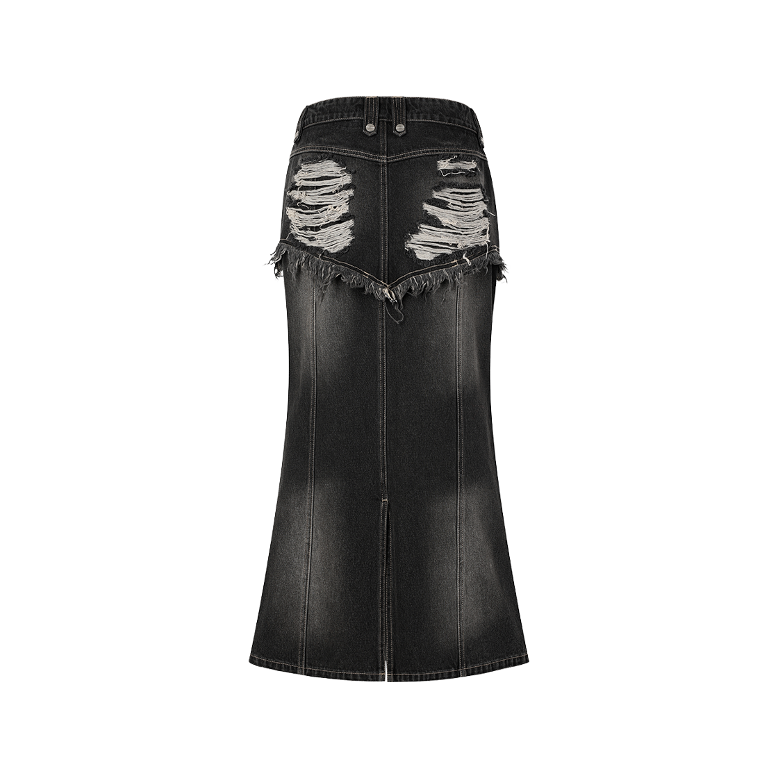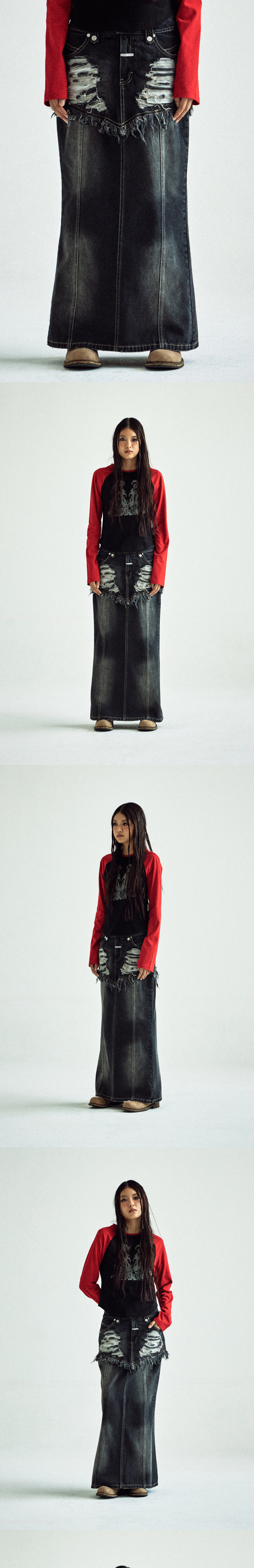 더바이닐하우스 디스트로이드 더블 데님 스커트 블랙