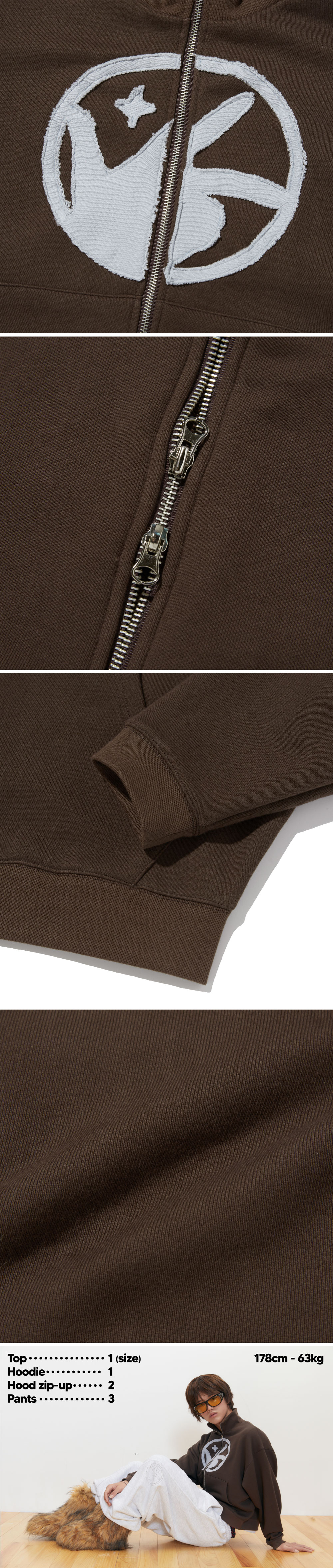 키미저리 핑거 로고 아플리케 크롭 집업 - 브라운