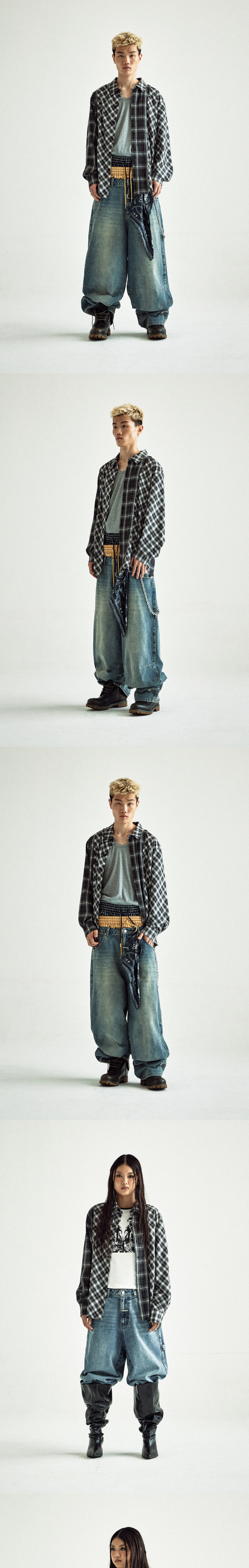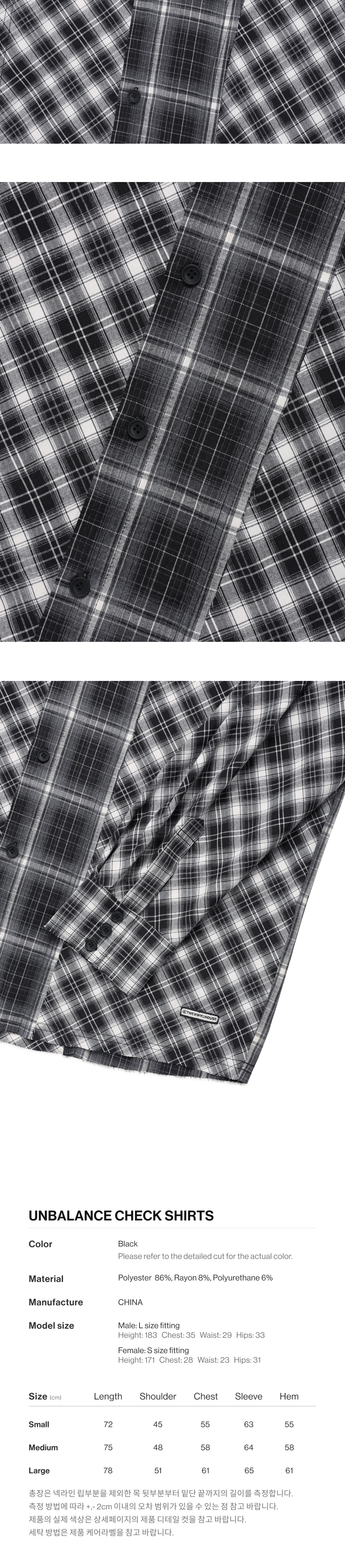 더바이닐하우스 언밸런스 체크 셔츠 블랙