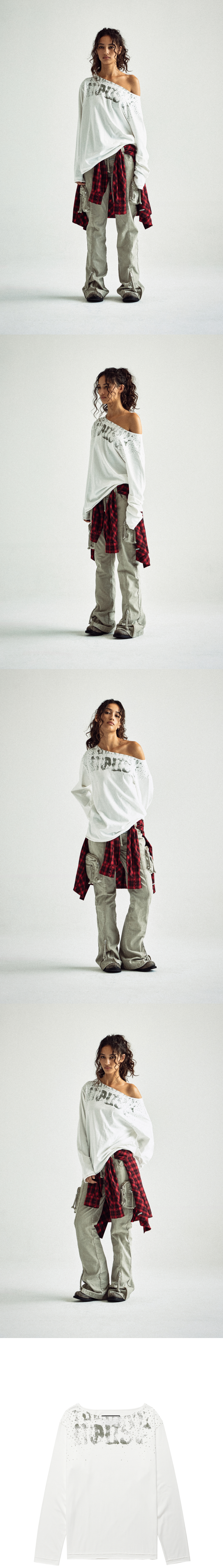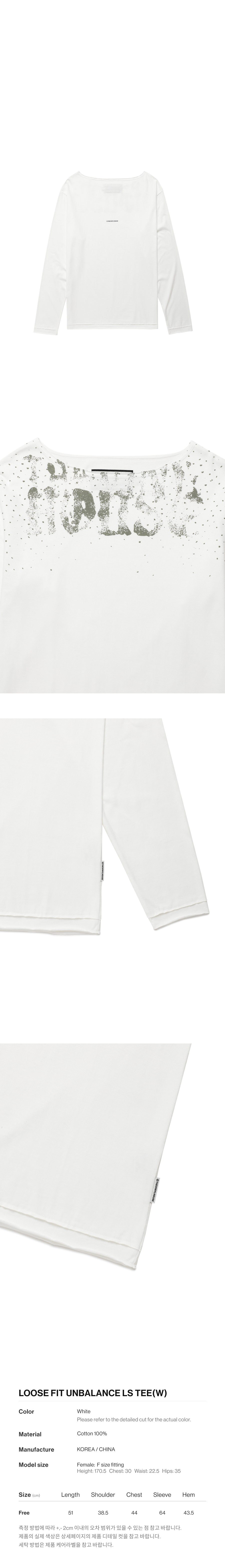 더바이닐하우스 루즈 핏 언밸런스 롱슬리브 티셔츠 화이트
