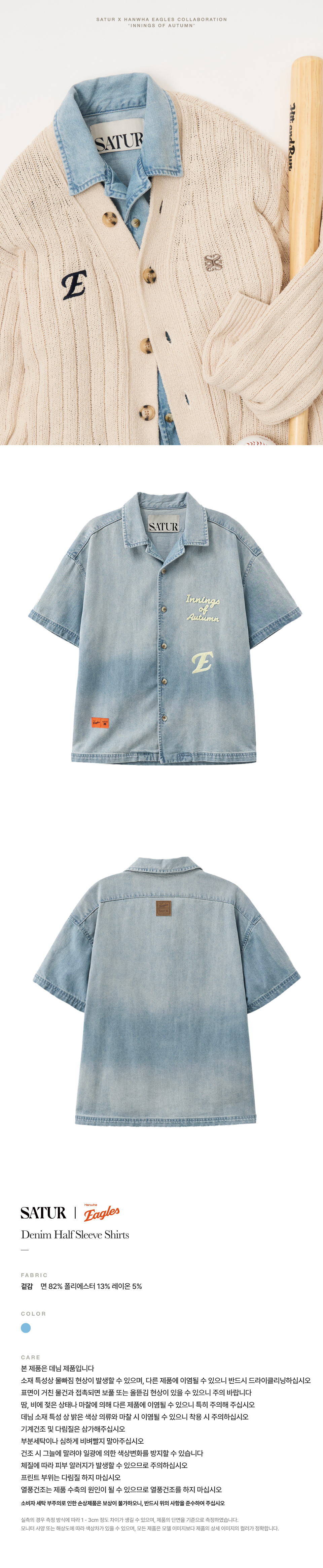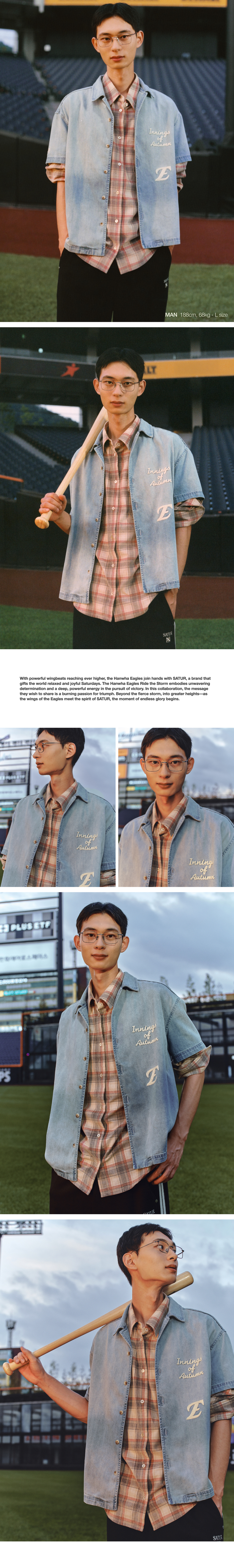 Satur x Hanwha Eagles Denim Half Sleeve Shirts Blue