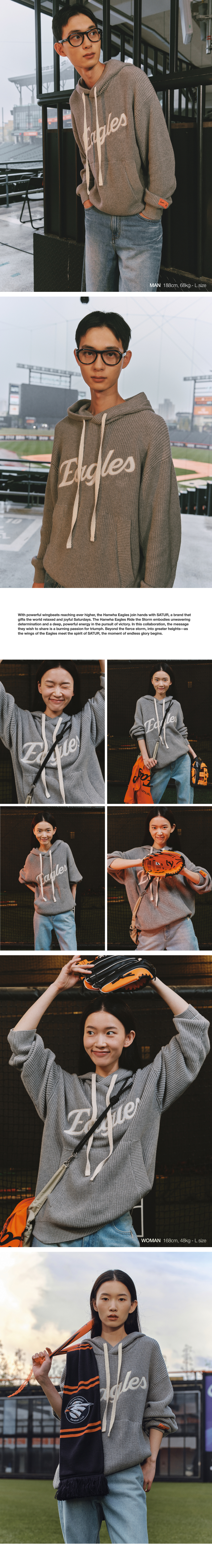 세터 X 한화 이글스 아플리케 니트 후디 멜란지 그레이