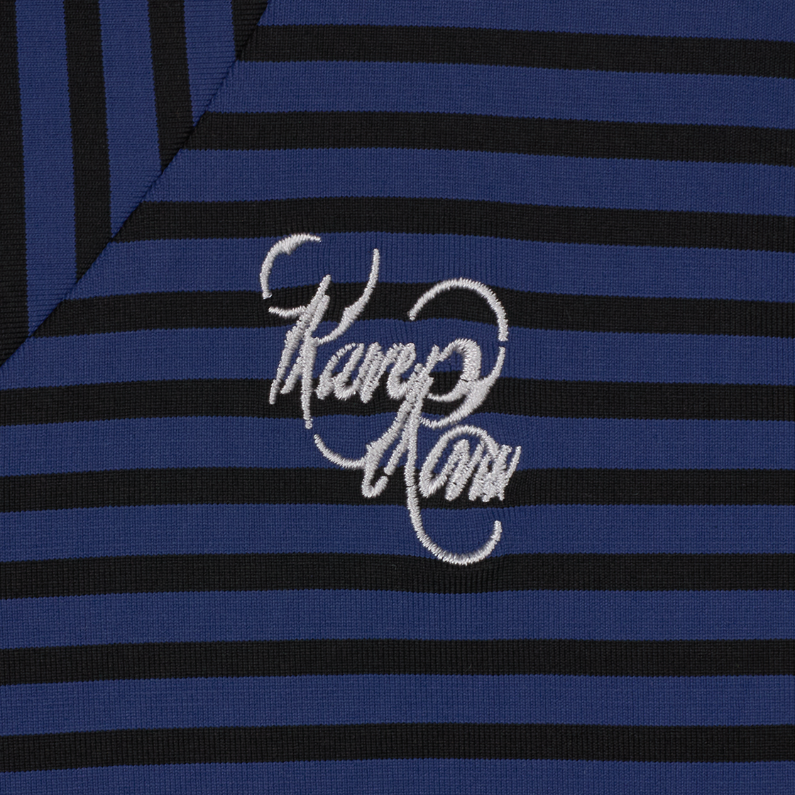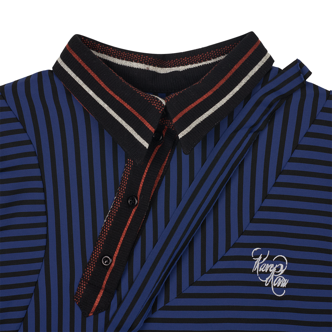 Rave Review Women Josephine Tight Fitted Assymetric Polo shirt With Embroidery Blue Black Stripe - 25FW