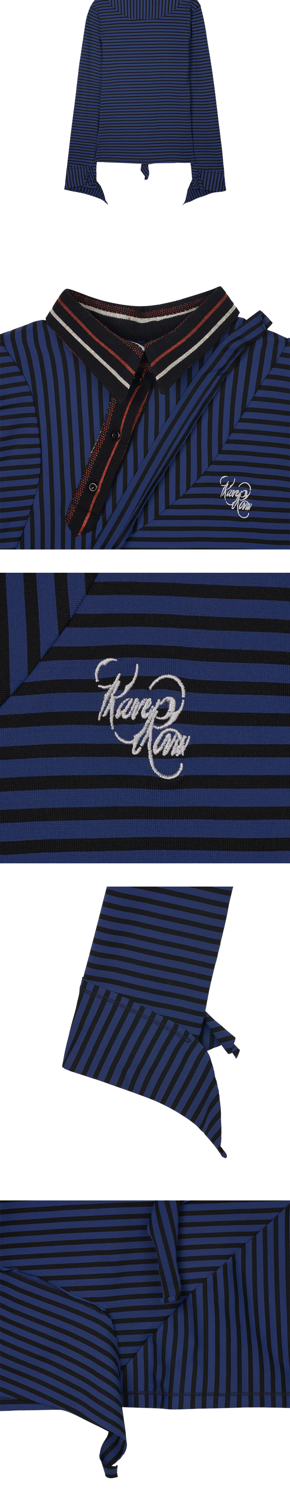 레이브 리뷰 우먼 조세핀 타이트 피티드 어시메트릭 폴로 자수 셔츠 블루 블랙 스트라이프 - 25FW