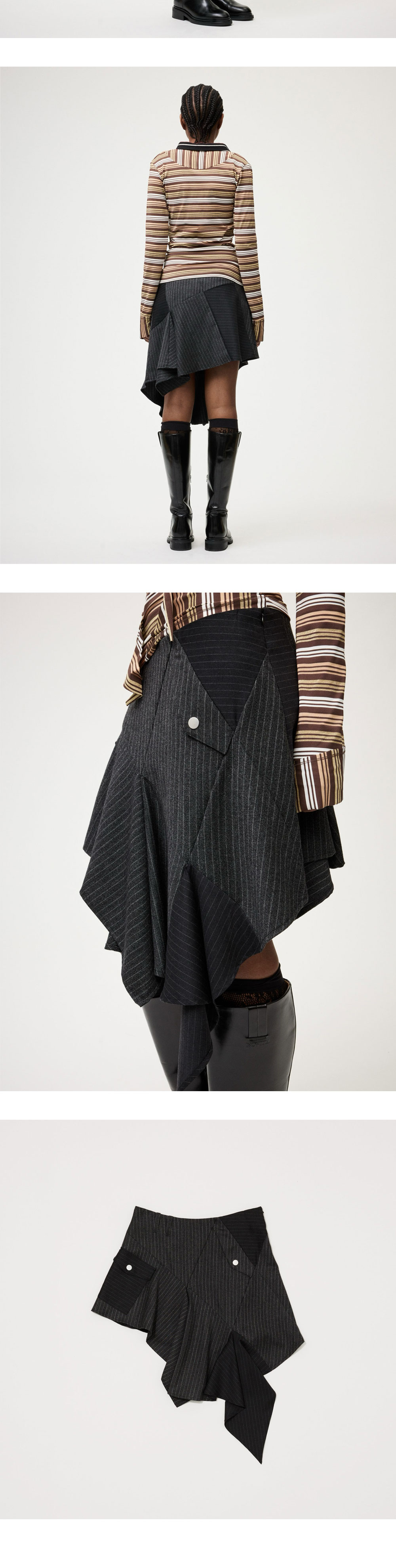 레이브 리뷰 우먼 노아 어시메트릭 스커트 위드 포켓 디테일 멀티 핀 스트라이프 - 25FW