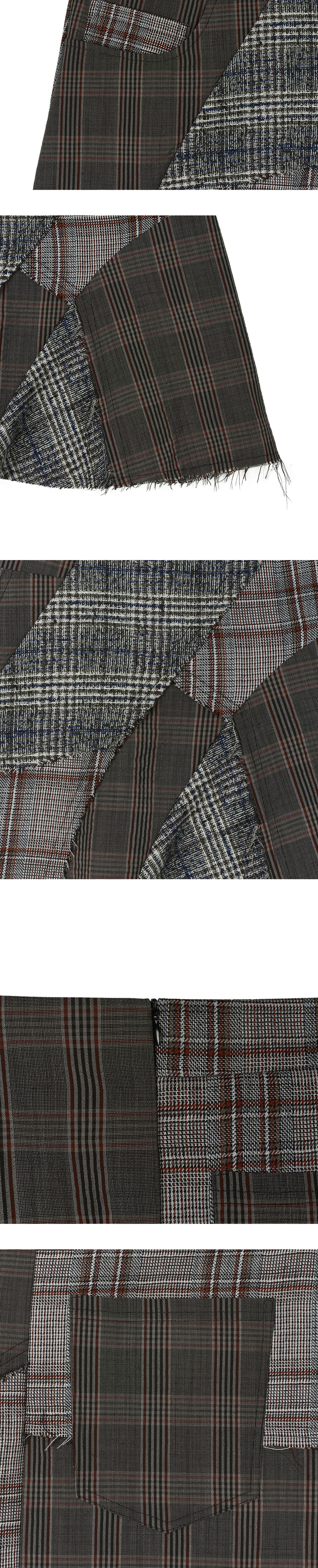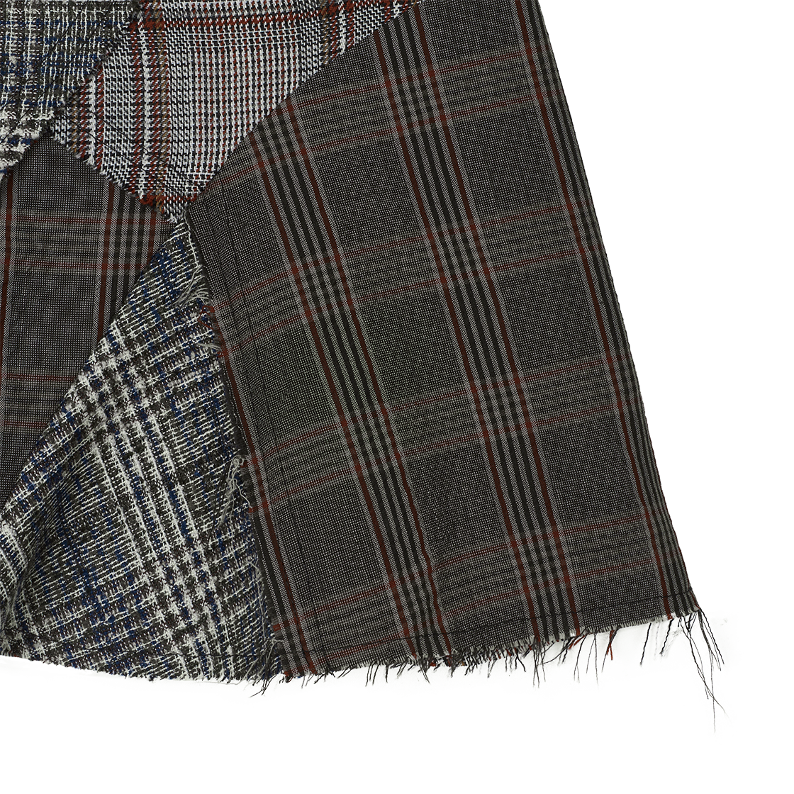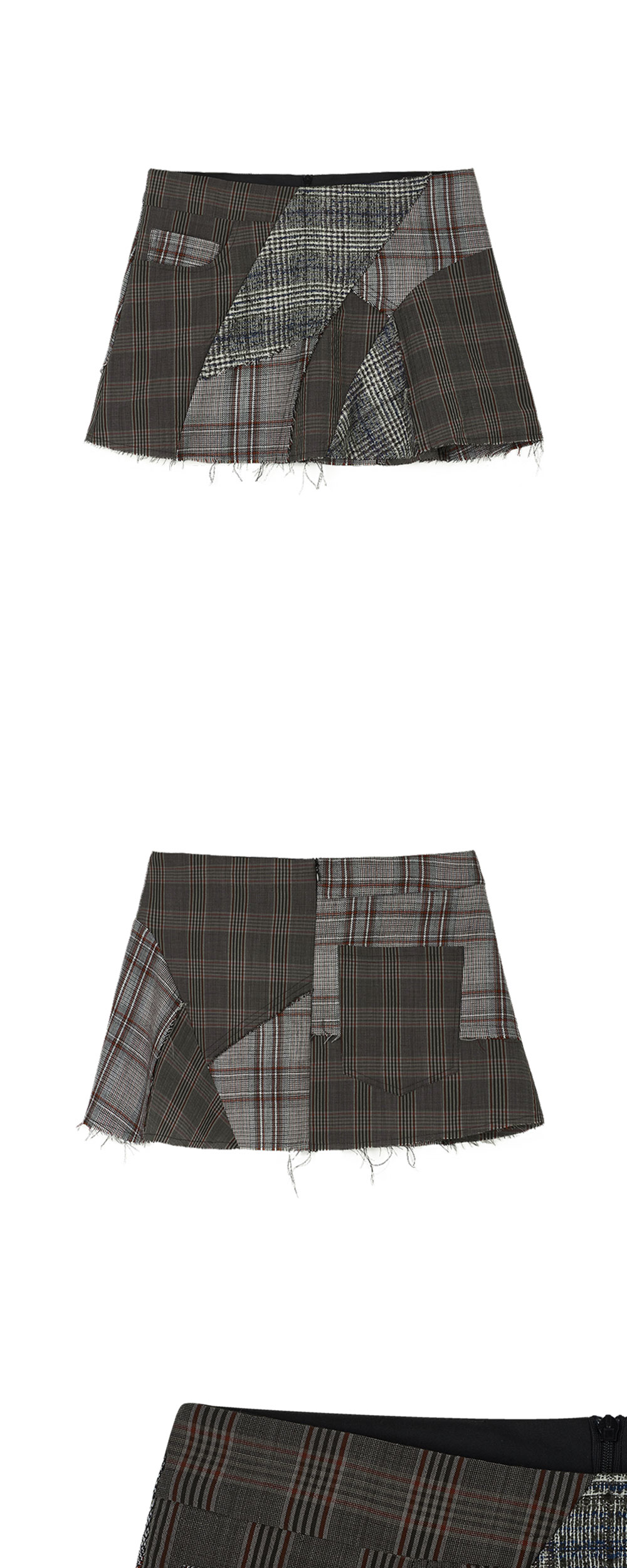 레이브 리뷰 우먼 애나벨 미니 패치워크 스커트 위드 포켓 레드 그레이 체크입니다. - 데드스탁 체크 원단을 업사이클링한 미니 스커트 - 여러 체크 패턴을 조합한 패치워크 디자인 - 자연스러운 올풀림 마감 - 로우 웨이스트 - 비대칭 절개선 - 앞포켓 2개, 뒷포켓 1개 구성