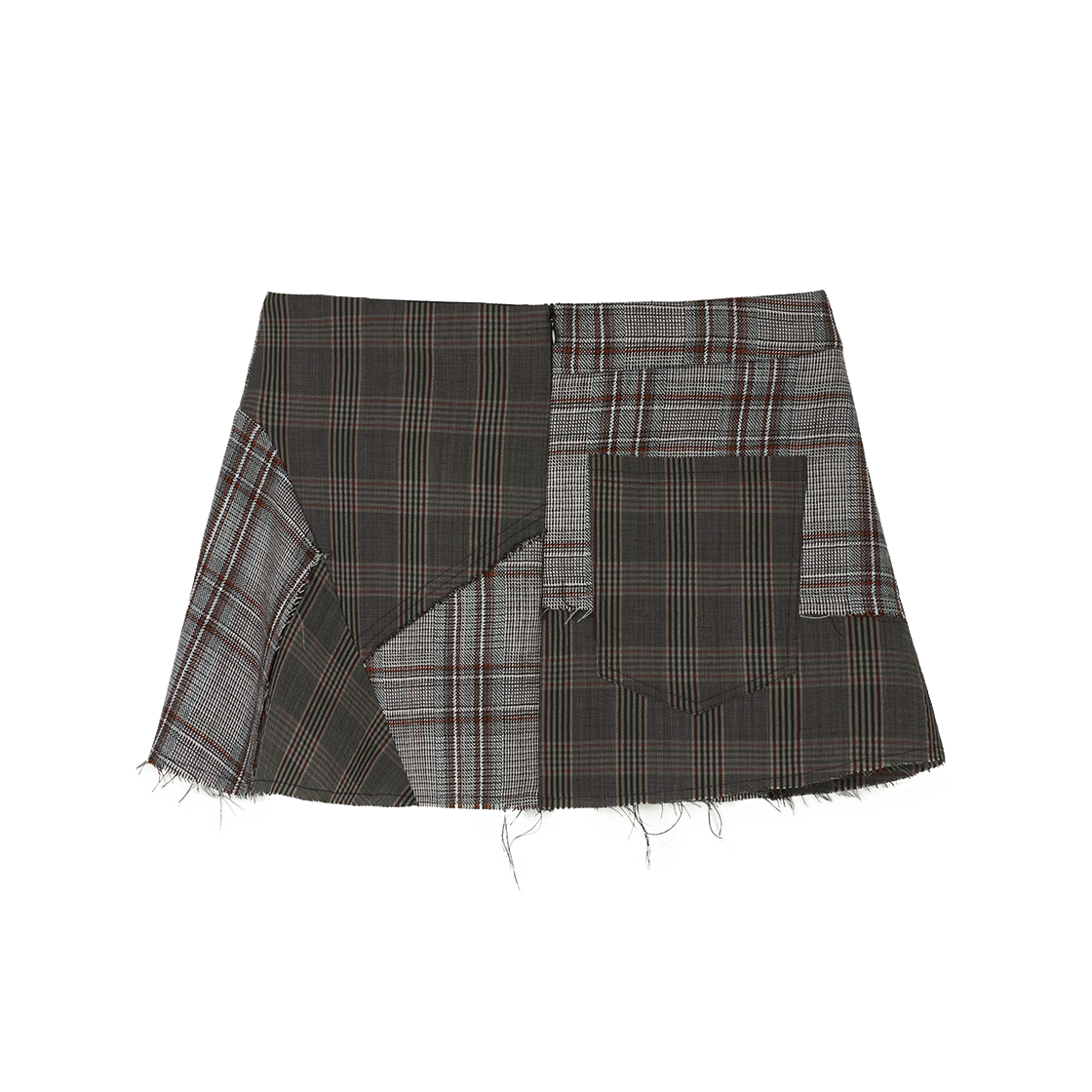 레이브 리뷰 우먼 애나벨 미니 패치워크 스커트 위드 포켓 레드 그레이 체크 - 25FW