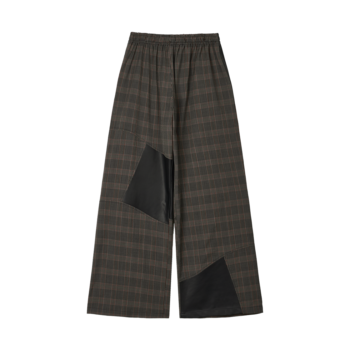 레이브 리뷰 우먼 크리스틴 루즈 패치워크 트라우저 위드 엘라스틱 웨이스트 브라운 체크 블랙 - 25FW