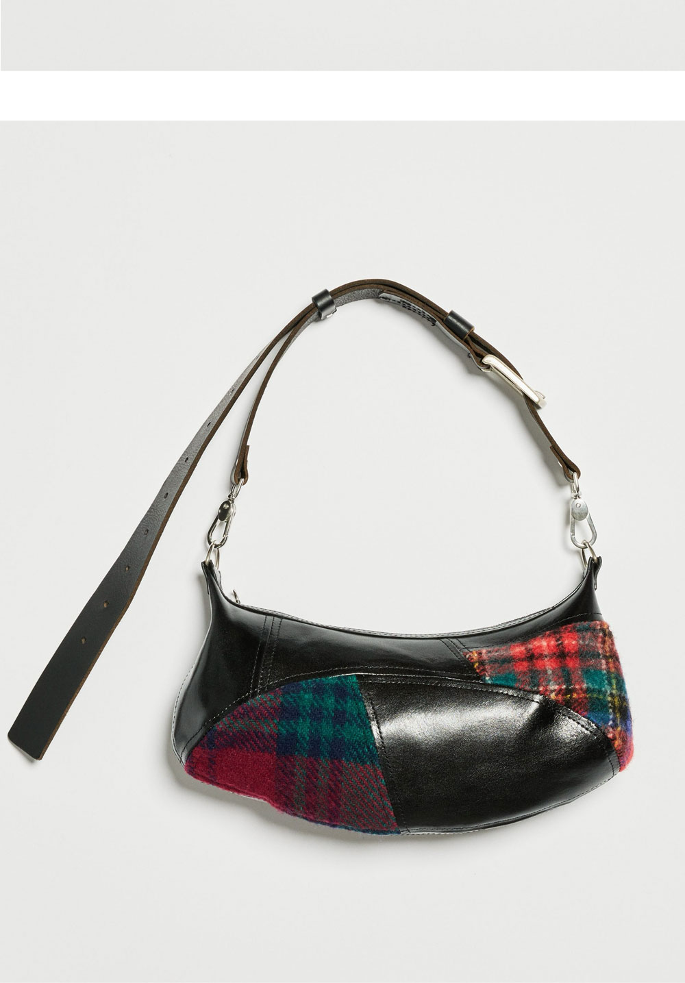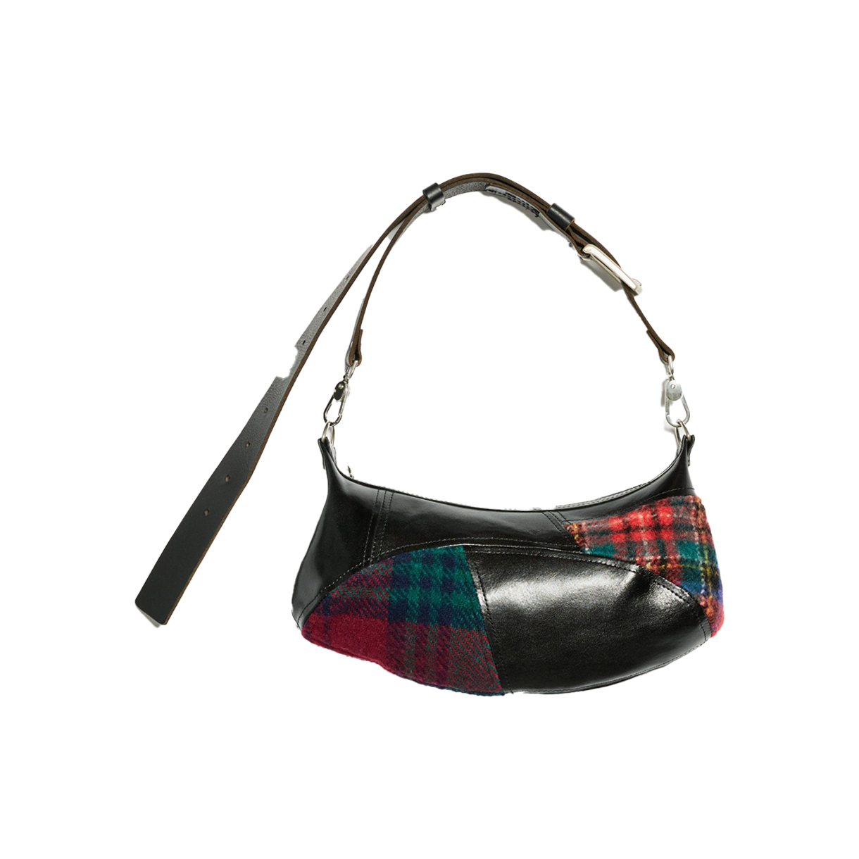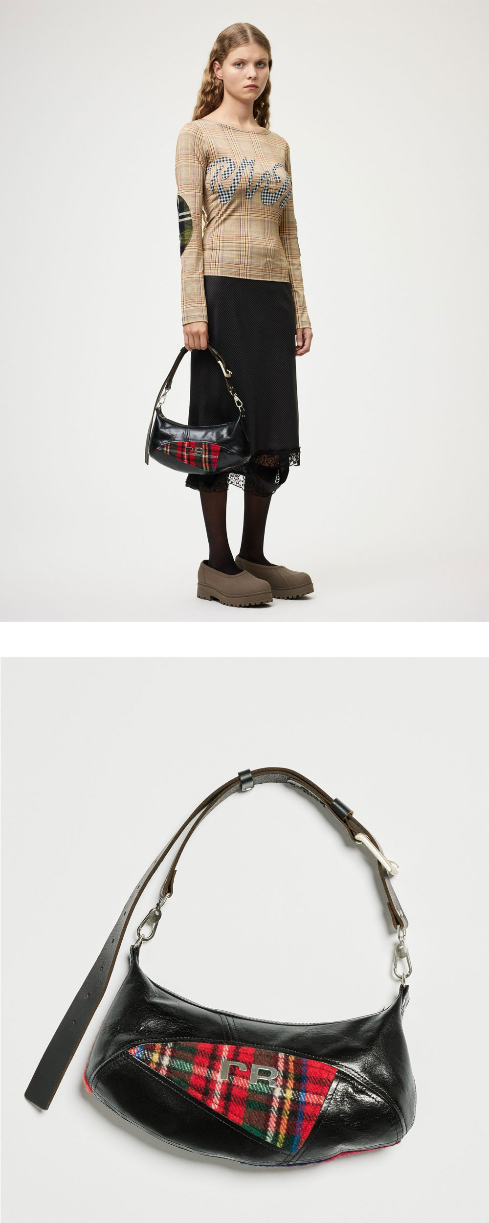 레이브 리뷰 우먼 로지 패치워크 숄더 백 위드 어드저스터블 벨트 스트랩 블랙 레드 타탄 - 25FW