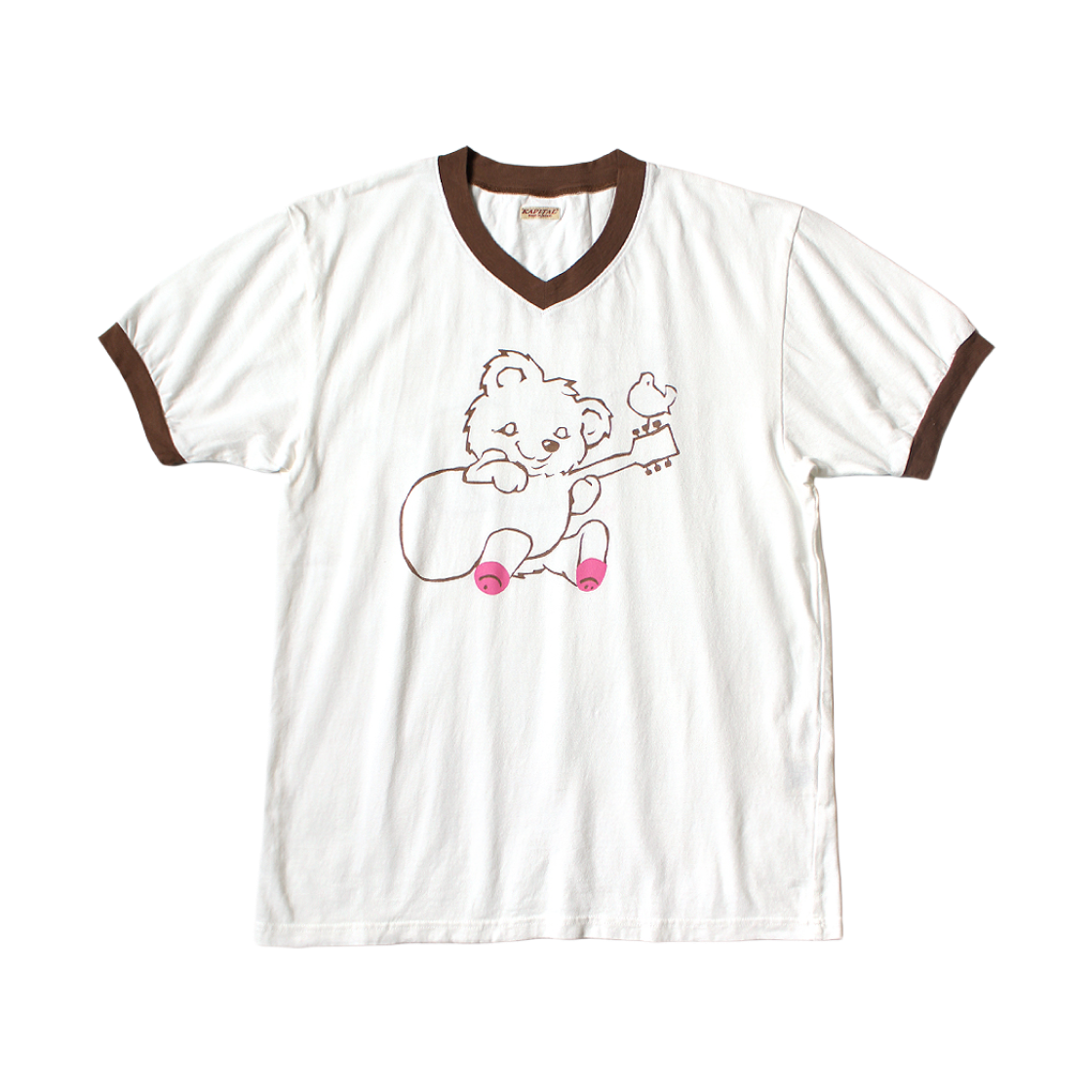 Kapital 20 Jersey V-Neck Ringer T-Shirt Little Bear & Harmony Pt Brown