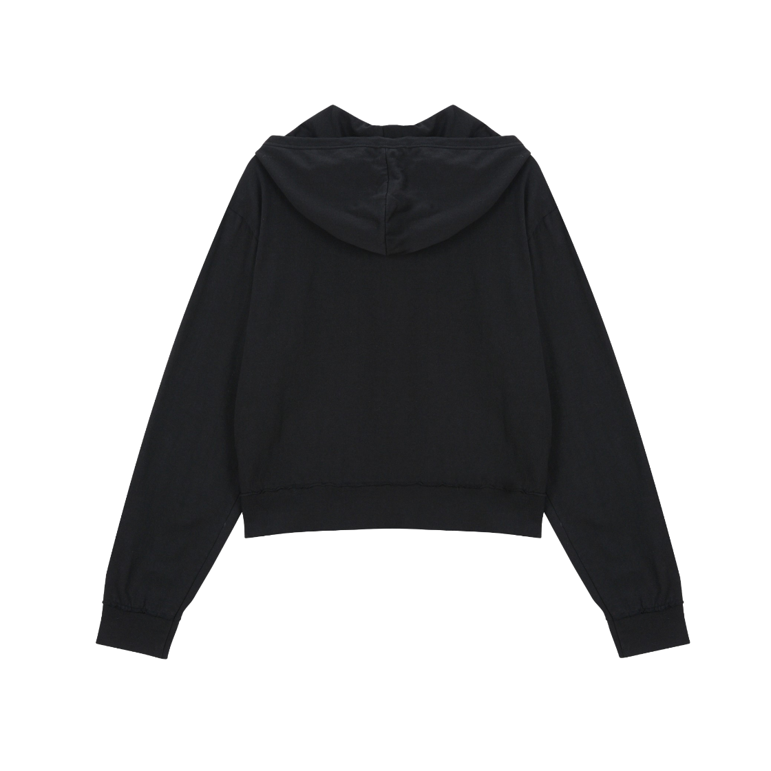 크롭한 기장의 캐주얼한 무드의 후드 집업 싱글 원단 사용으로 가벼운 아웃웨어부터 이너웨어까지 활용 후드/주머니 라인따라 배치된 메탈 스터드 장식 포인트 소매/밑단 홀겹 재봉하여 빈티지한 디테일 연출 M/L (CM) Lenght : 60.5 / 62.5 Shoulder : 51.5 / 53.5 Bust : 54 / 56 Sleeve : 68.5 / 69.5