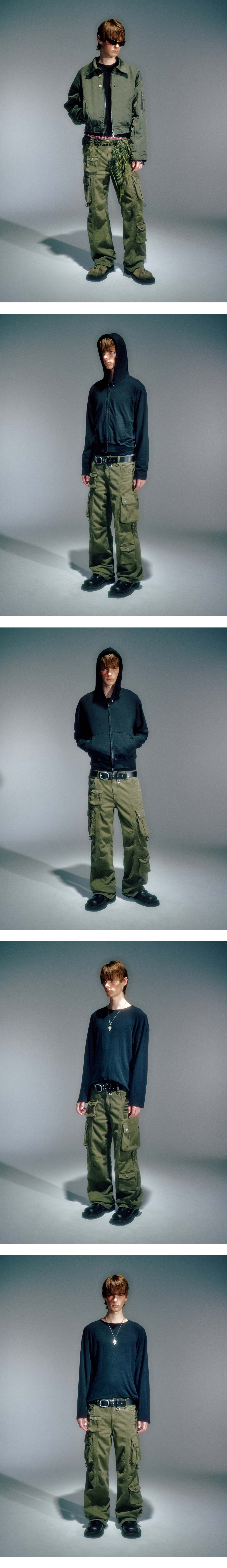 세미 부츠컷 라인의 카고 팬츠 사이드와 프론트에 다양한 사이즈의 입체 포켓 디테일 D링과 스냅 버튼 장식이 더해져 유틸리티 감성 연출 워싱 처리로 전체적으로 빛바랜 컬러와 빈티지한 실루엣 연출 워크웨어 감성을 담아 다양한 캐주얼 룩과 매치하기 좋은 아이템 M/L (CM) Length : 108 / 110 Waist : 42.5 / 44.5 Hip : 53 / 55 Thigh : 31.5 / 32.5 Front Rise : 28.5 / 29.5 Hem : 26 / 26