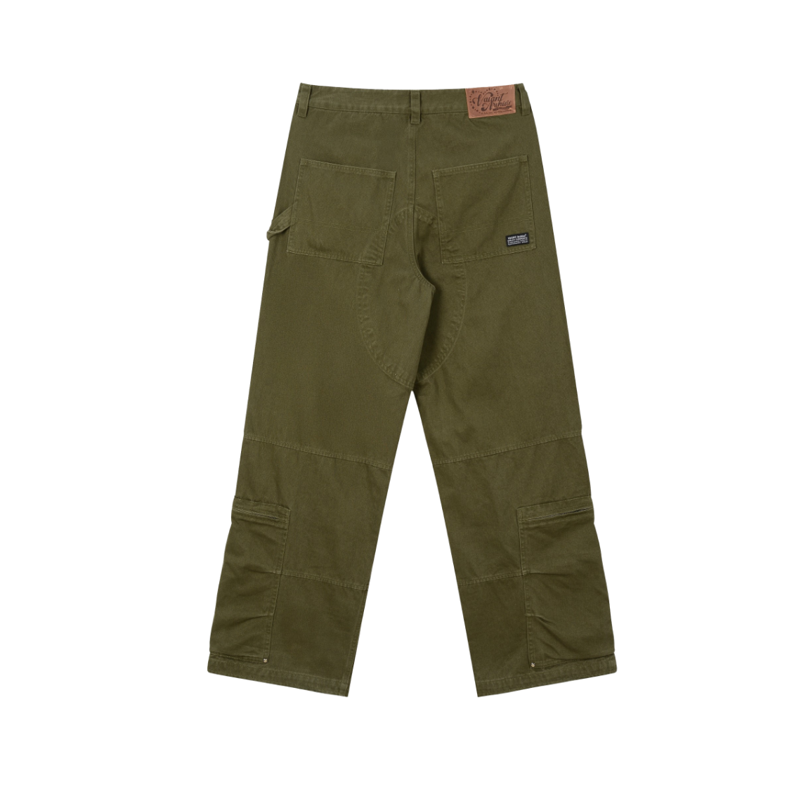 YKK 지퍼 사용 밀리터리 칼집 포켓 디테일과 워크웨어 포켓 디테일을 비대칭하게 배치 양쪽 밑단 포켓 사용으로 수납공간 확보 가먼츠 워싱으로 빈티지한 컬러감 구현 무릎 턱 디테일로 인한 입체적인 실루엣 베이컨트 제작 리벳 사용 M/L (CM) Length : 106 / 108 Waist : 43 / 45 Hip : 53 / 55 Thigh : 33.5 / 34.5 Front Rise : 33.5 / 34.5 Hem : 27 / 28
