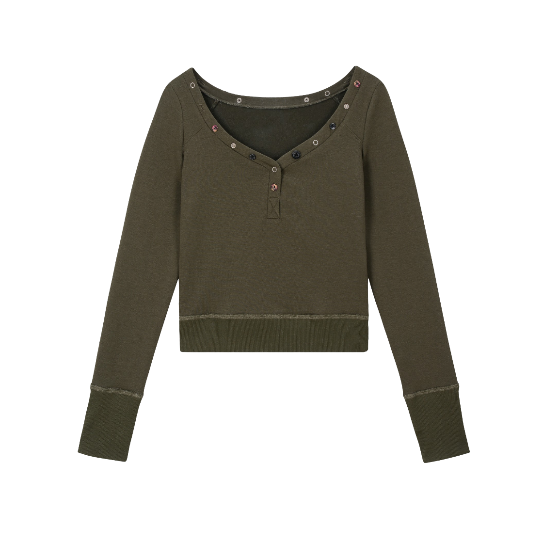 베이컨트 아카이브 리나 보트넥 버튼 롱슬리브 탑 카키