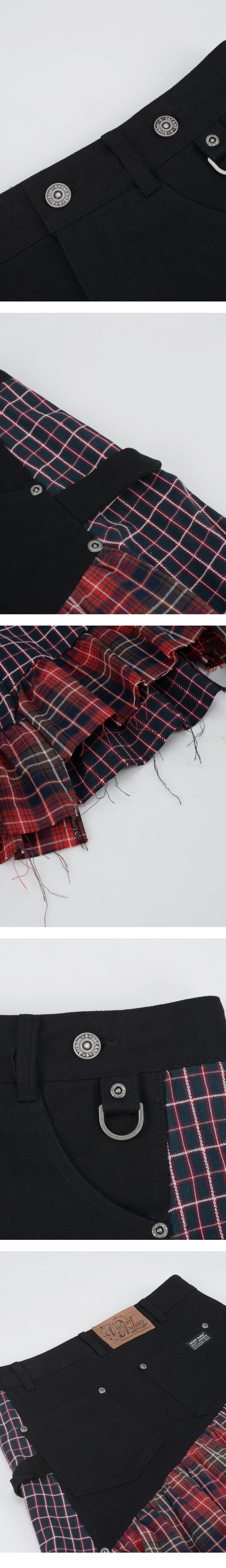 믹스된 체크 원단 사용으로 빈티지 무드 연출 두개의 캔톤으로 사이즈 조절 가능 워싱 처리 빈티지한 밑단 올풀림 현상 워크웨어 디자인으로 다양한 무드의 하의와 레이어드 코디 연출 ONE SIZE (CM) Lenght : 72.5 Waist : 37-41.5 Hip : 50.5-55