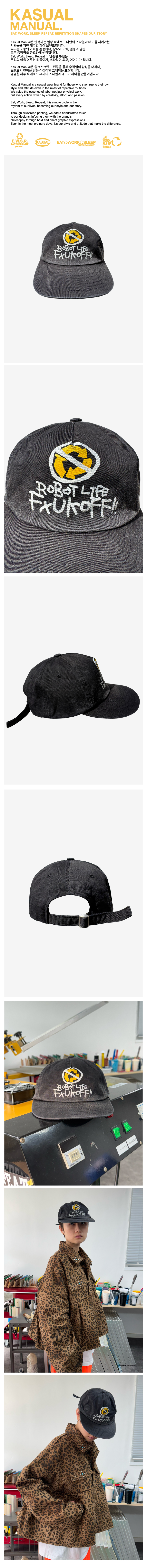 기계처럼 반복되는 삶에 던지는 Kasual Manual의 도발적인 메세지입니다. 전면에는 로봇 라이프 거부를 상징하는 심볼과 함께, 거칠고 자유분방한 레터링 ROBOT LIFE F×UK OFF!!가 강렬하게 새겨져 있습니다. 단순한 액세서리가 아니라, 루틴에 저항하고 자기 방식대로 살아가고자 하는 태도를 담은 볼캡. 워크웨어 기반이지만 키치한 감성이 더해져, 스트릿 무드와 잘 어울리는 아이템입니다.