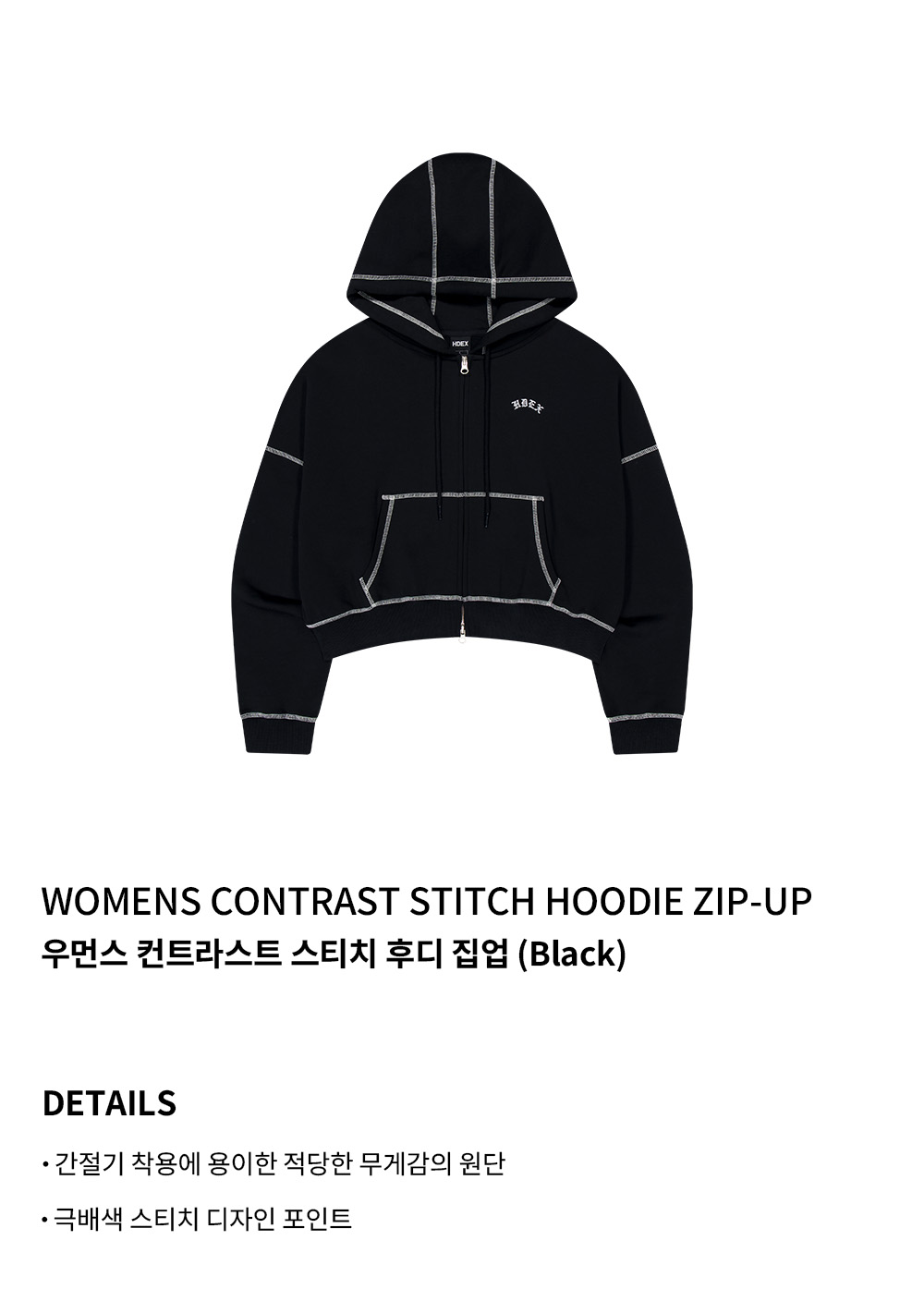 에이치덱스 우먼스 컨트라스트 스티치 후디 집업 블랙