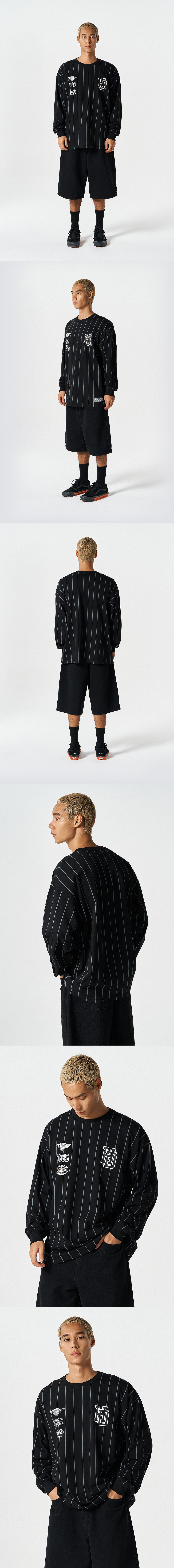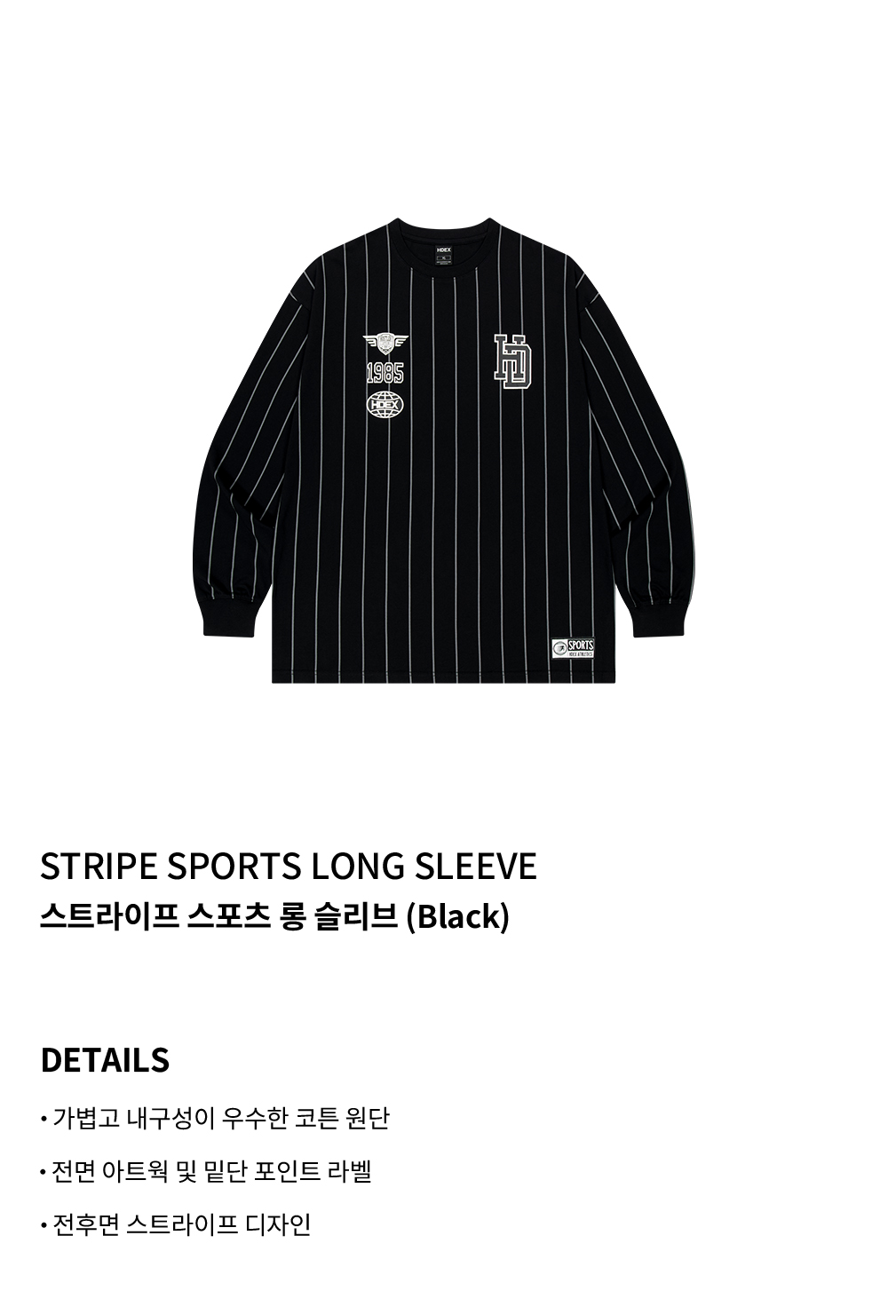 에이치덱스 스트라이프 스포츠 롱 슬리브 블랙