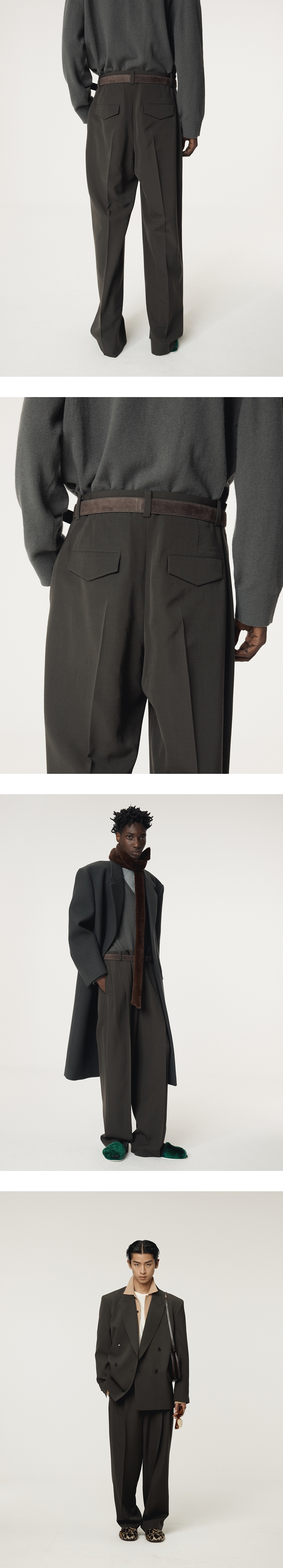 - 탄탄한 울 소재로 구조적인 실루엣 구현 - 투 턱 디테일로 입체감을 더한 디자인 - 앞뒤 프레스 디테일로 깔끔한 핏 유지 - 사이드 립 포켓으로 실용성 강화