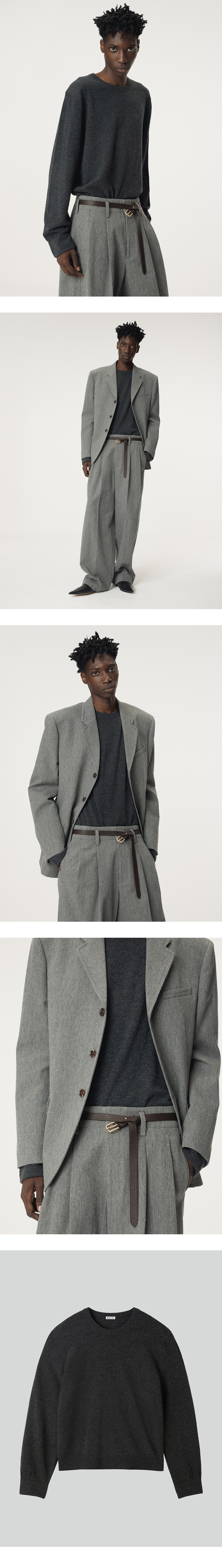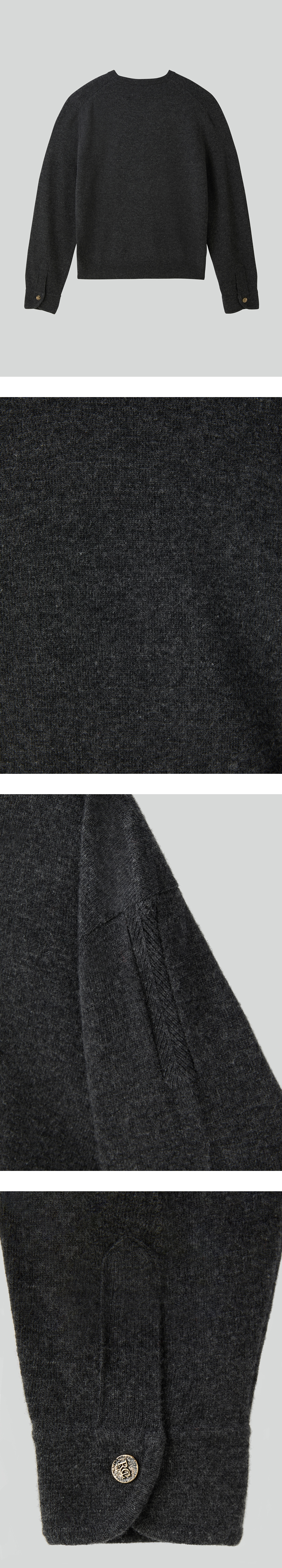 - 셔츠형 커프스 디테일을 차용한 디자인의 니트 탑 - ‘RC’ 로고가 양각된 개발 금속 단추 포인트 - 기본적인 핏의 라운드넥 롱슬리브 실루엣