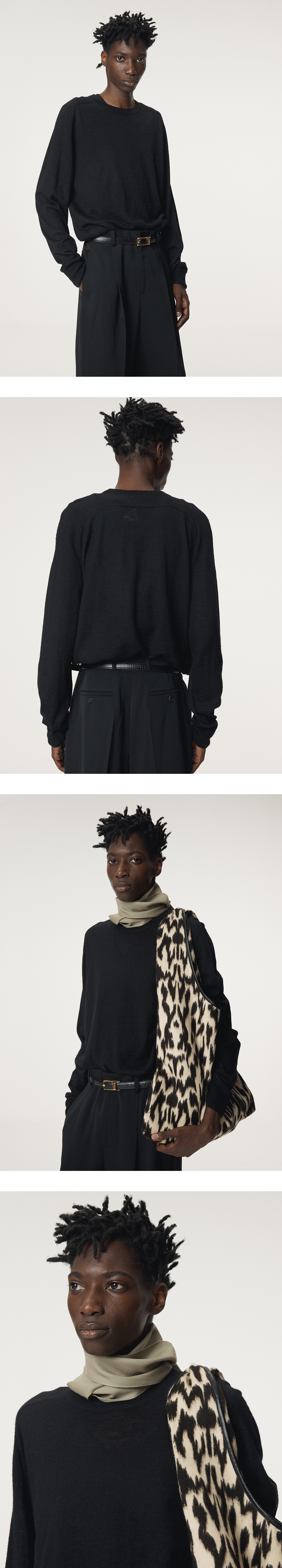- 레귤러 핏의 긴팔 니트 - 가볍고 은은한 비침 있는 시어한 소재 - 좌측 밑단 ‘RC’ 로고 자수 포인트