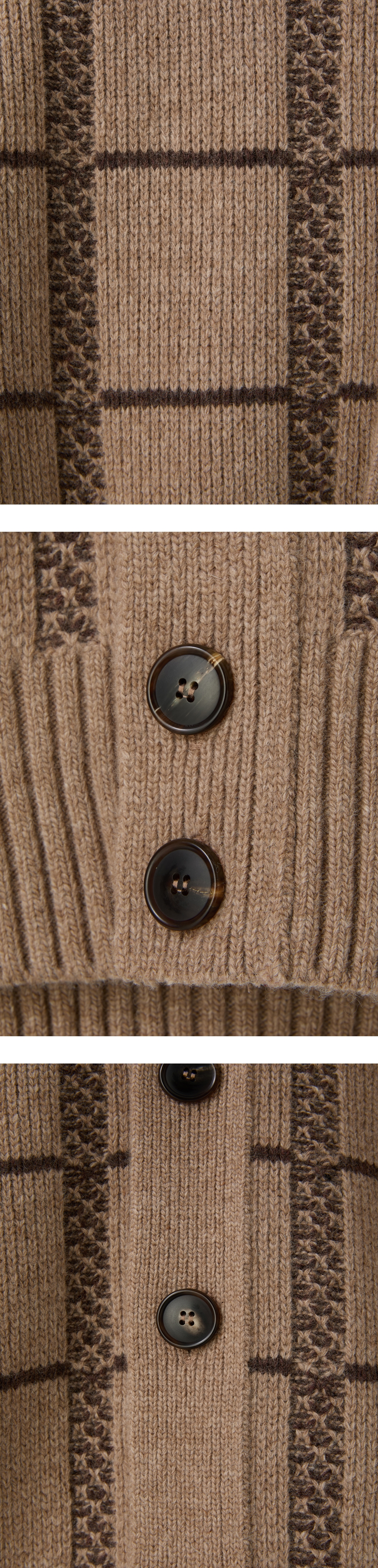 - 볼륨감 있는 실루엣의 가디건 - 소뿔 단추 여밈으로 클래식한 포인트 강조 - 자카드 조직 디테일로 고급스러운 텍스처 표현