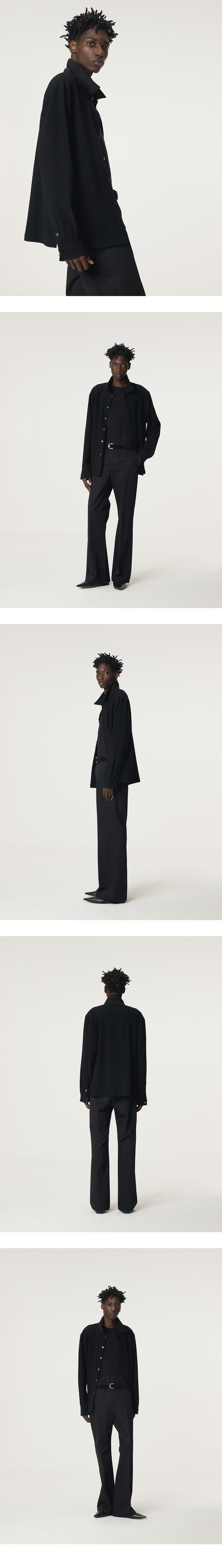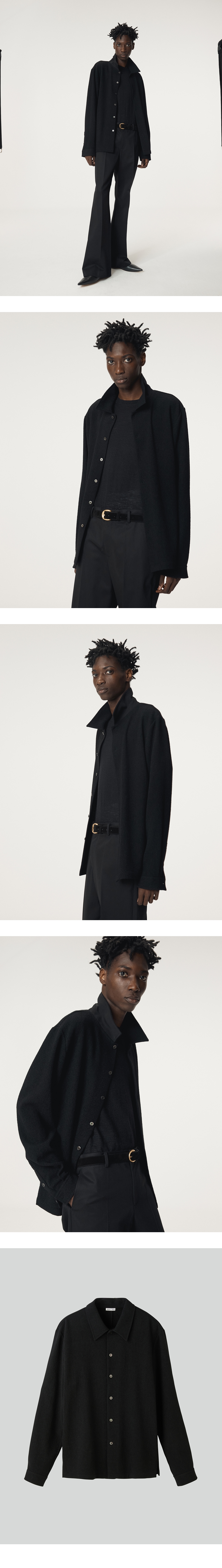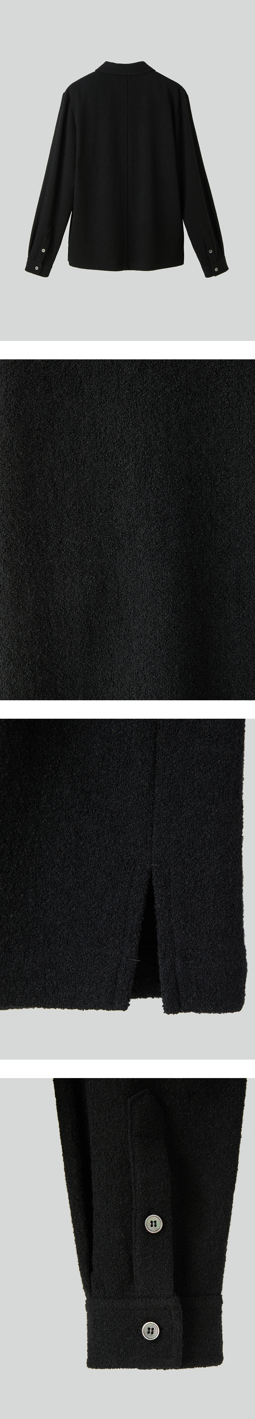 - WOOL MIX 링구 원사에 워싱을 더해 볼륨감과 조직감을 살린 저지 셔츠 - 자개 단추 여밈 디테일 - 카라와 소매 안쪽 배색 디테일