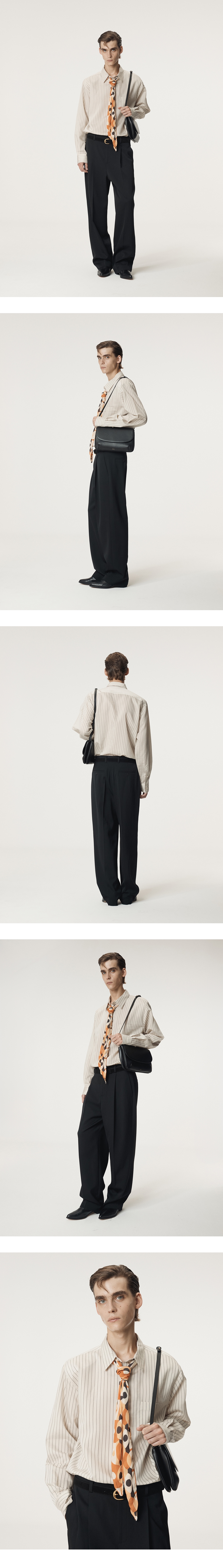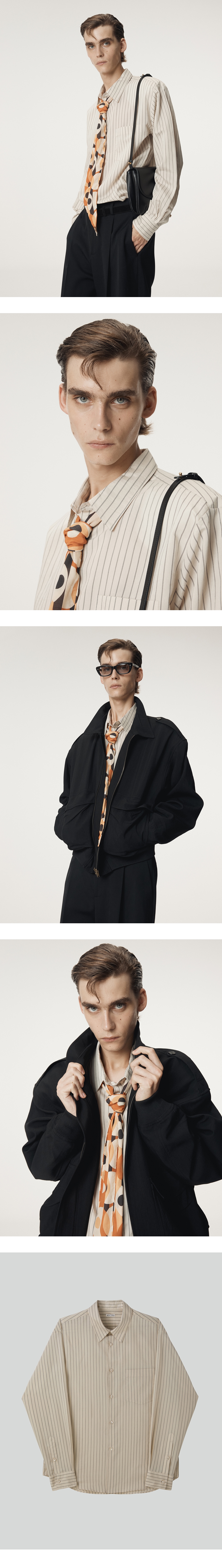 - 플루이드한 터치감의 셀룰로오스 혼방 스트라이프 소재, 루즈 핏 실루엣 셔츠 - 염색 자개 단추 여밈 디테일 - SUSTAINABLE FIBER - FABRIC MADE IN JAPAN