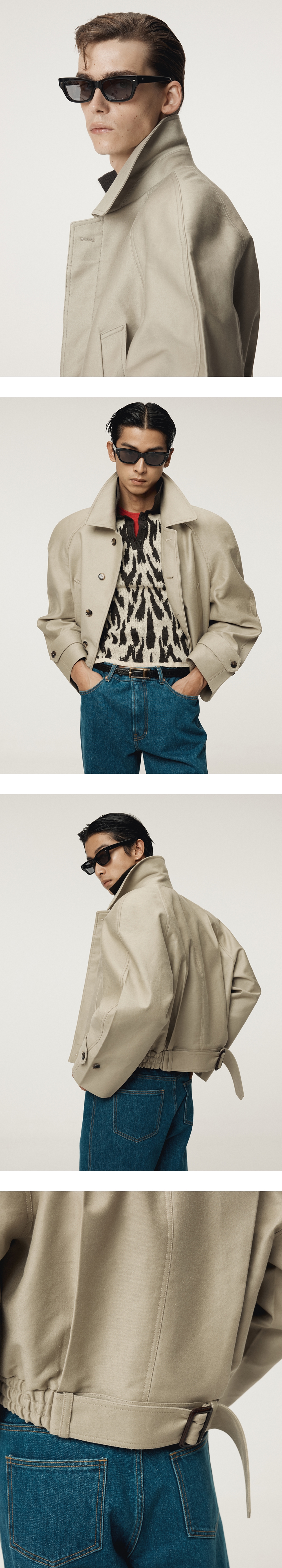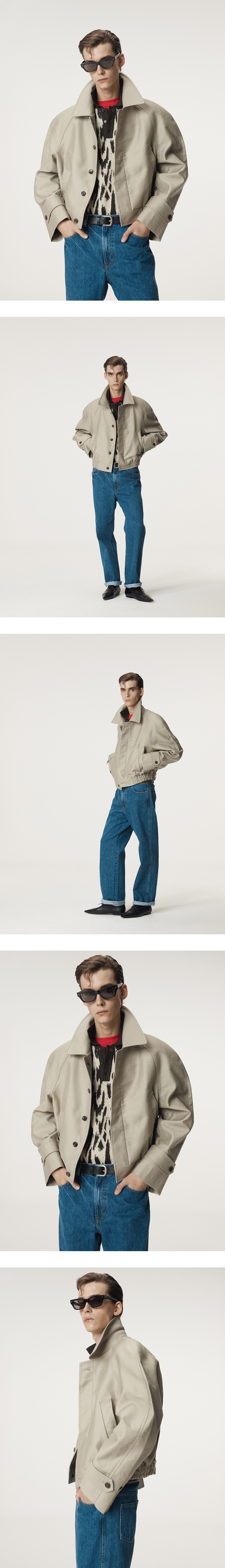 - 고밀도 코튼 트윌 몰스킨 소재, 여유로운 핏과 곡선형 어깨 실루엣의 점퍼 - 소뿔단추 여밈 디테일로 클래식한 포인트 강조 - 숄더 패드 부착으로 안정적인 어깨 라인 형성 - 소매 프레스 디테일로 구조감 강화 - 벨트 디테일로 다양한 스타일링 연출 가능 - 내부 안감 처리로 착용감과 내구성 향상 - FABRIC MADE IN JAPAN