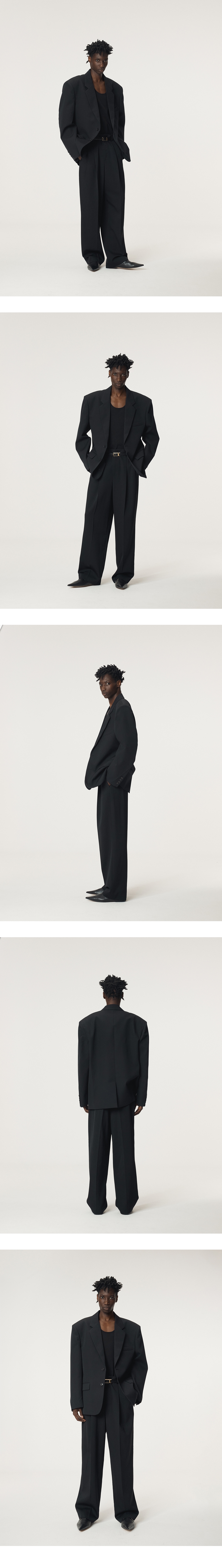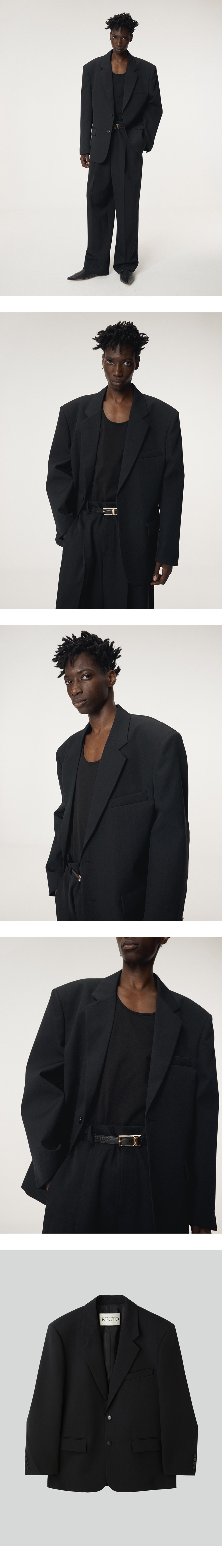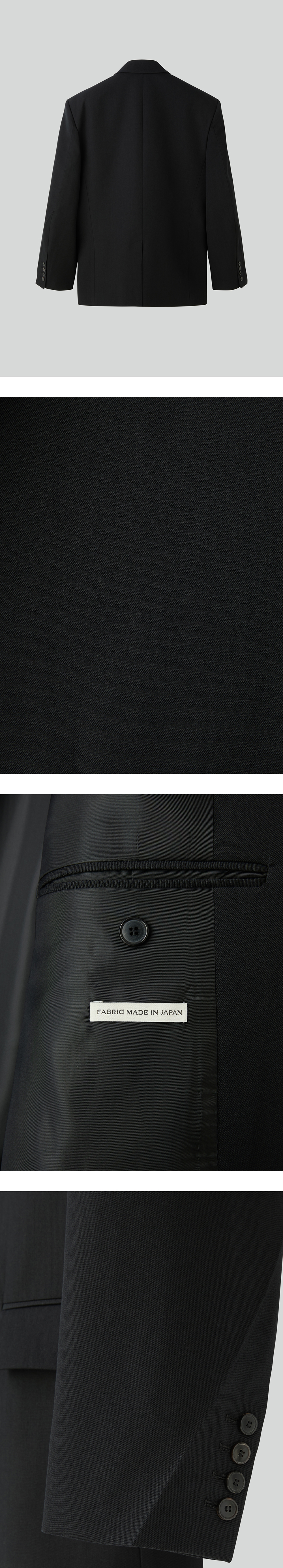 - 은은한 조직감이 살아있는 고밀도 울·코튼 혼방 소재, 오버사이즈 핏의 싱글 브레스트 재킷 - 소뿔단추 여밈으로 클래식한 무드 강조 - 숄더 패드 부착으로 안정적인 어깨 라인 형성 - 뒷면 하단 트임으로 활동성 강화 - 내부 안감 처리로 완성도와 착용감 강화 - FABRIC MADE IN JAPAN