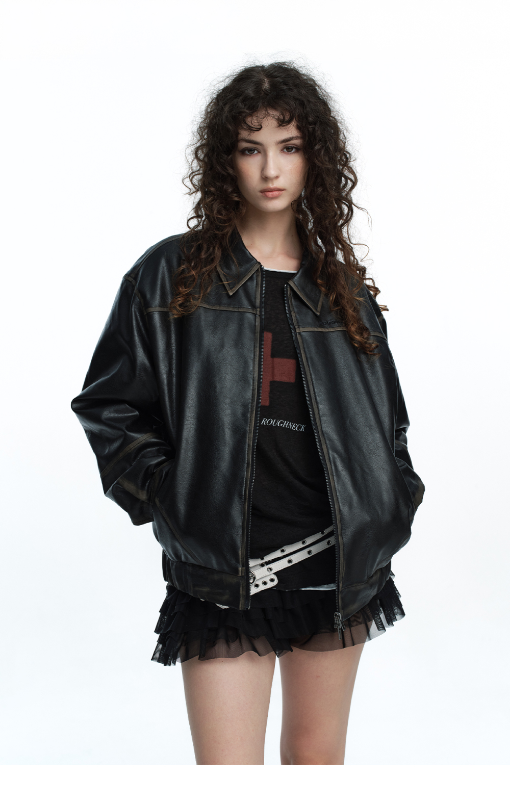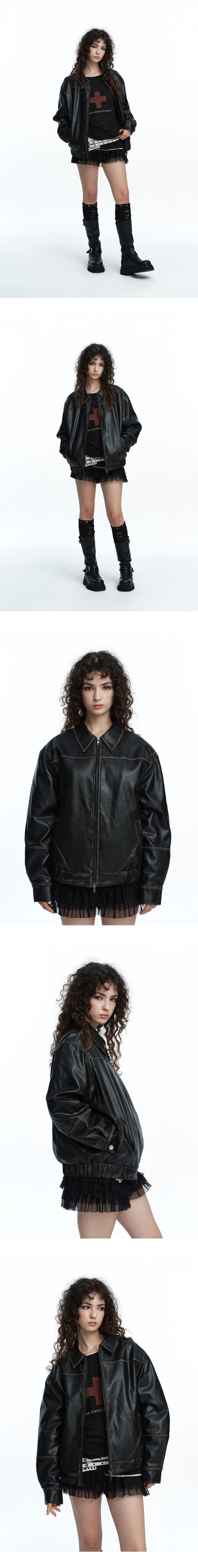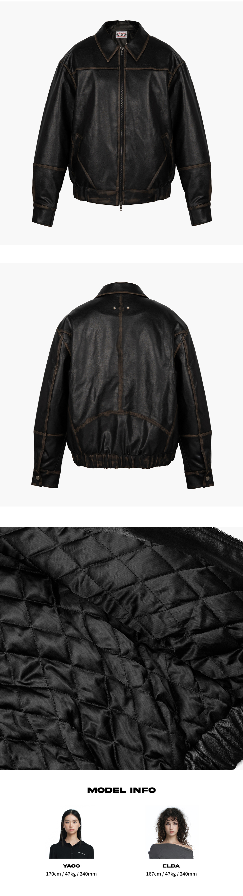 빈티지한 워싱 디테일이 돋보이는 루즈핏 레더 재킷입니다. 자연스럽게 바랜 듯한 워싱과 절개 라인이 자연스럽게 어우러집니다. 투웨이 지퍼 디자인으로 다양한 실루엣 연출이 가능하며, 여유로운 핏으로 어떤 이너웨어와도 편안하게 매치할 수 있습니다. 안감은 패딩 퀼팅으로 마감하여 따뜻함과 활동성을 동시에 잡았습니다. Model size : YACO 170cm 47kg / ELDA 167cm 47kg Fitting size : S Material : Polyurethane 100%
