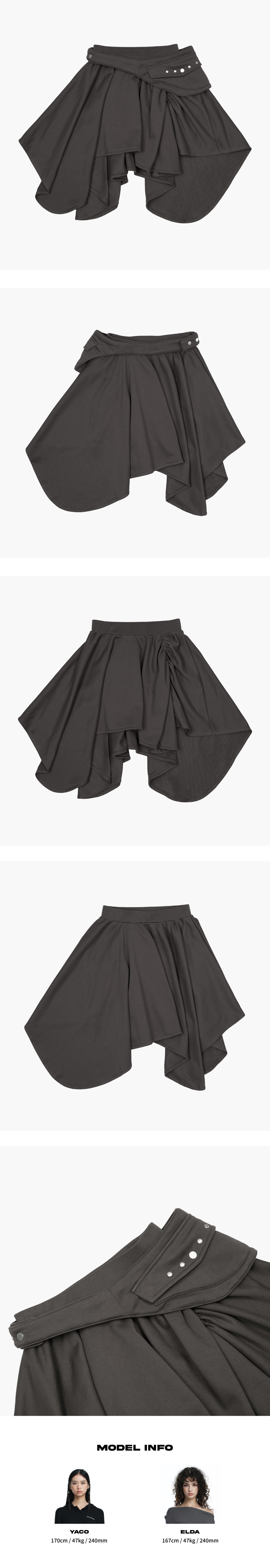 탈부착 가능한 벨트 포켓이 더해진 드레이핑 스커트입니다. 언밸런스한 실루엣과 풍성하게 흐르는 드레이프 라인이 시선을 사로잡으며, 벨트 포켓을 부착하거나 분리해 스타일에 맞는 다양한 무드를 연출할 수 있습니다. 도톰한 후드 원단과 허리 밴딩으로 안정적이면서도 편안한 착용감을 제공합니다. Model size : YACO 170cm 47kg / ELDA 167cm 47kg Fitting size : S Material : Cotton 86% / Polyester 14%