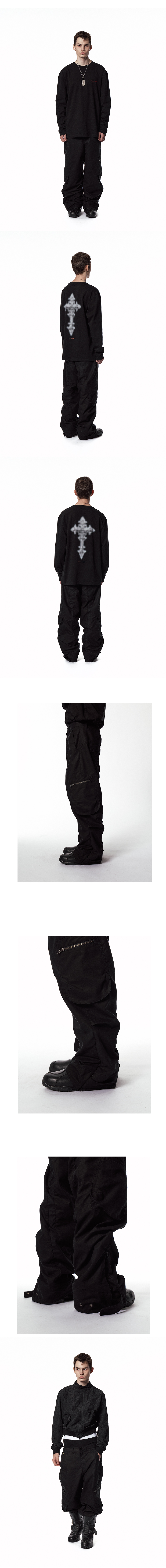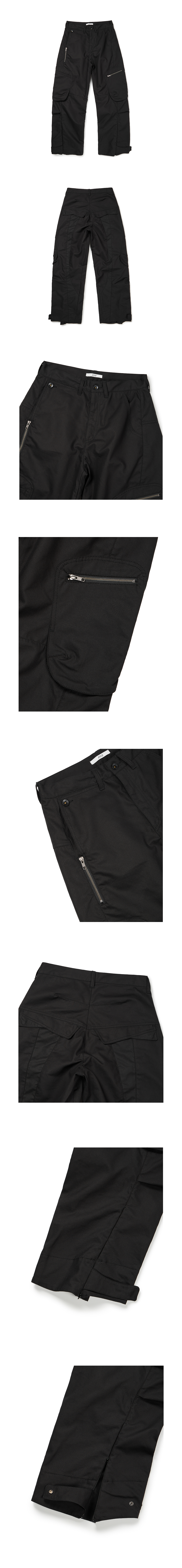- 커브드 엔지니어드 팬츠 - 루즈 스트레이트 핏 - 앞 YKK 지퍼 플라이 - 배색라인 및 변형 포켓 덮개 디테일 - 볼륨형 비대칭 포켓 디테일 - 밑단 조절 스냅 버튼 MADE IN CHINA