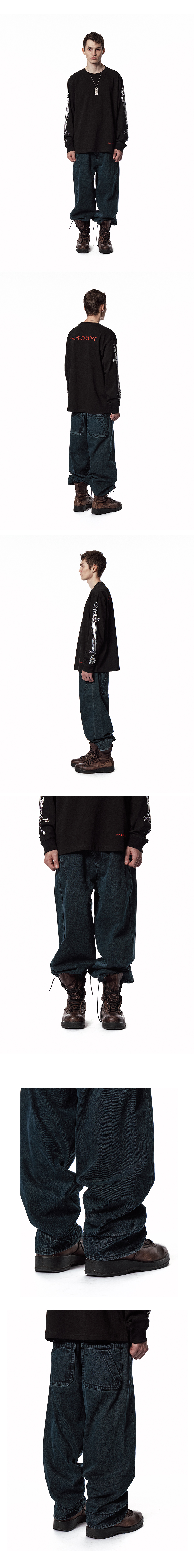 - 루즈 와이드핏 - 가먼트 블랙 염색 공정 - 사선형 YKK 지퍼 플라이 - 커브드 옆선 - 포켓 다트, 절개 - 곡선형 밑단 라이닝 - 덧방 더블 힙 포켓 MADE IN CHINA *워싱 처리가 된 제품으로 색상 및 디테일이 개체마다 차이가 있을 수 있습니다.