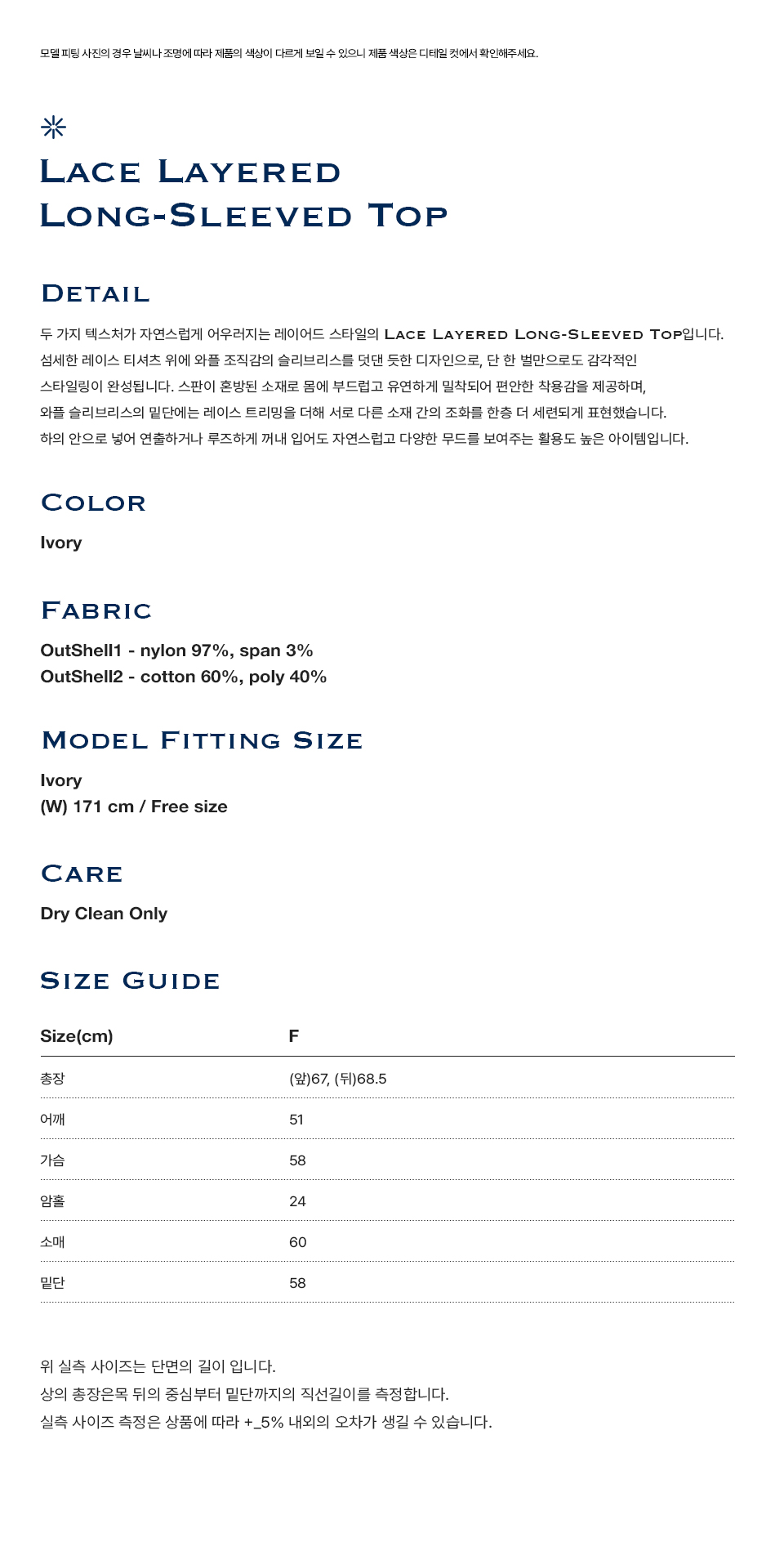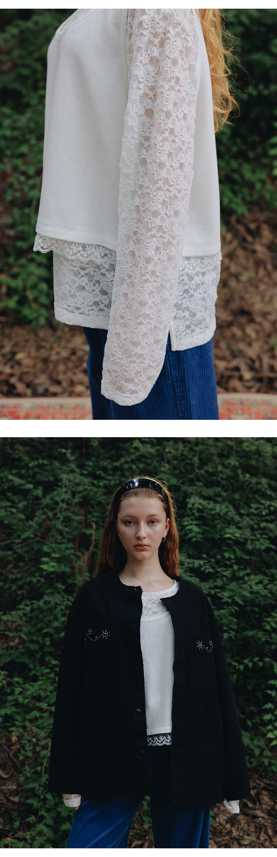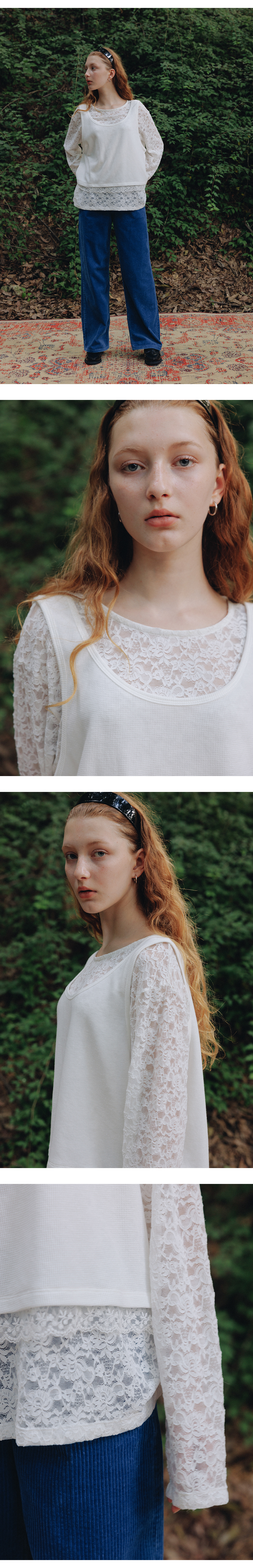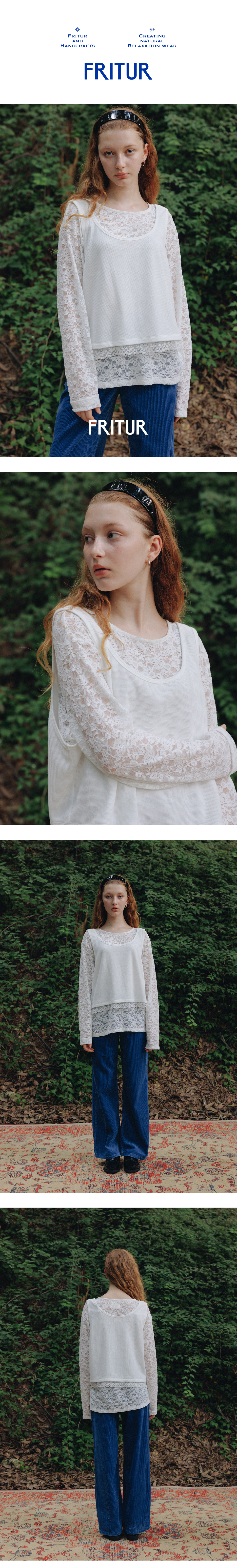프리터 레이스 레이어드 롱 슬리브드 탑 아이보리