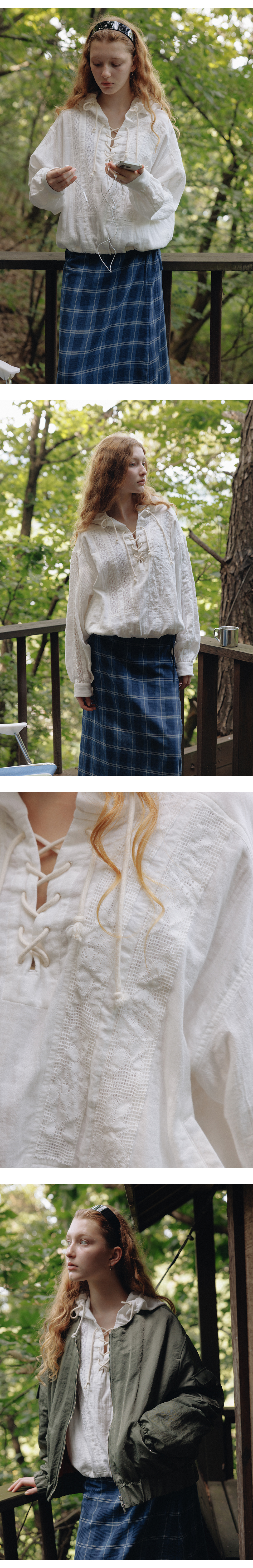 프리터 크로셰 레이스 후디 셔츠 화이트