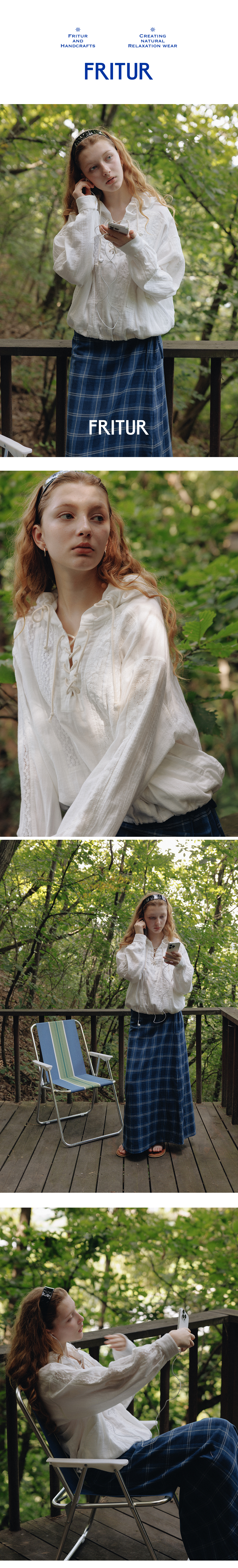 FRITUR Crocher Lace Hoody Shirt White