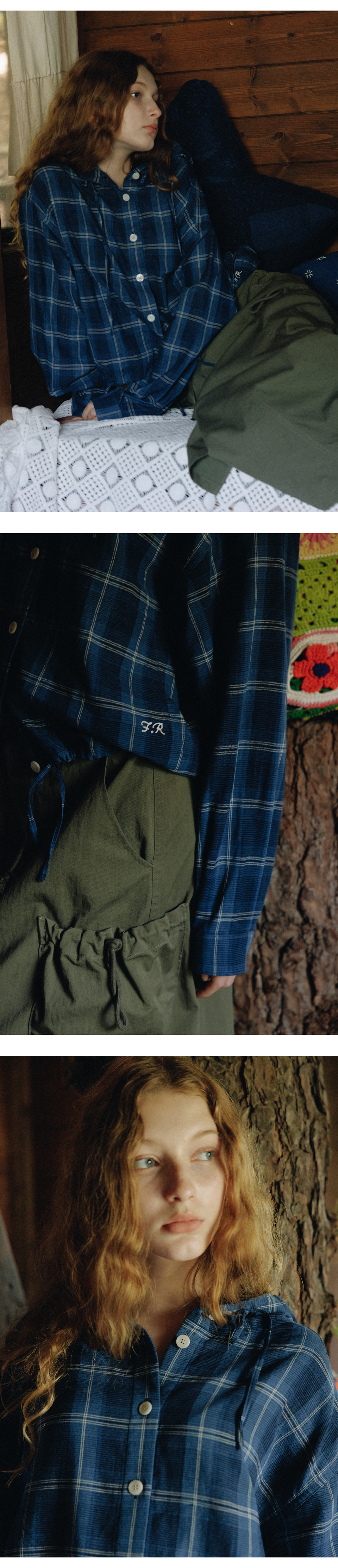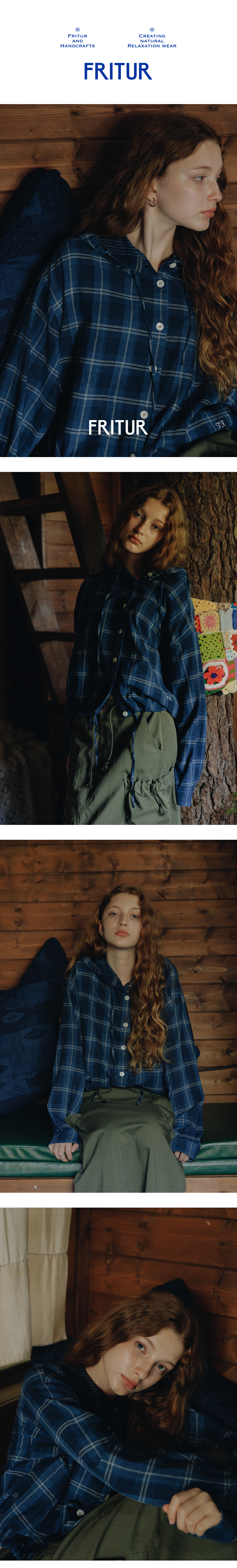 FRITUR Check Hoody Shirt Blue