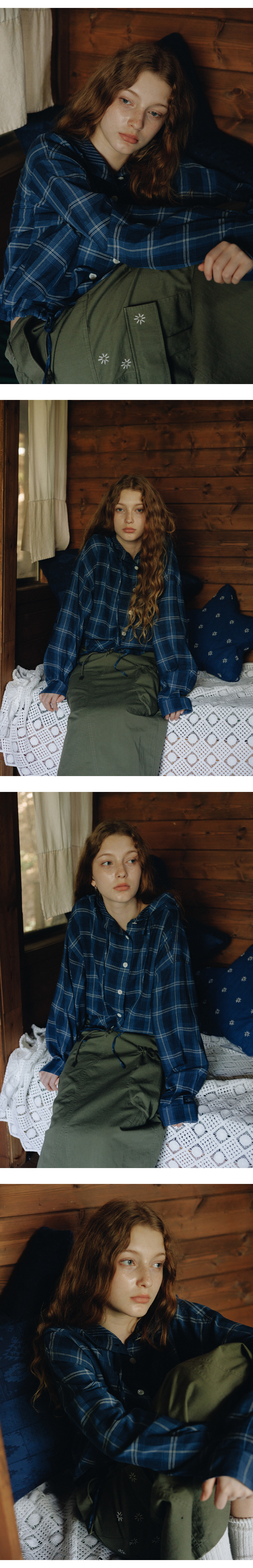 프리터 체크 후디 셔츠 블루