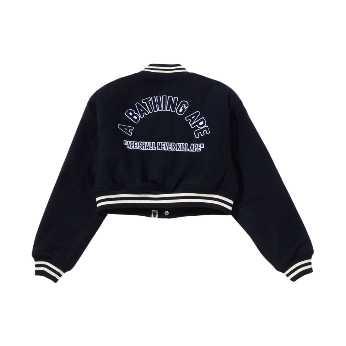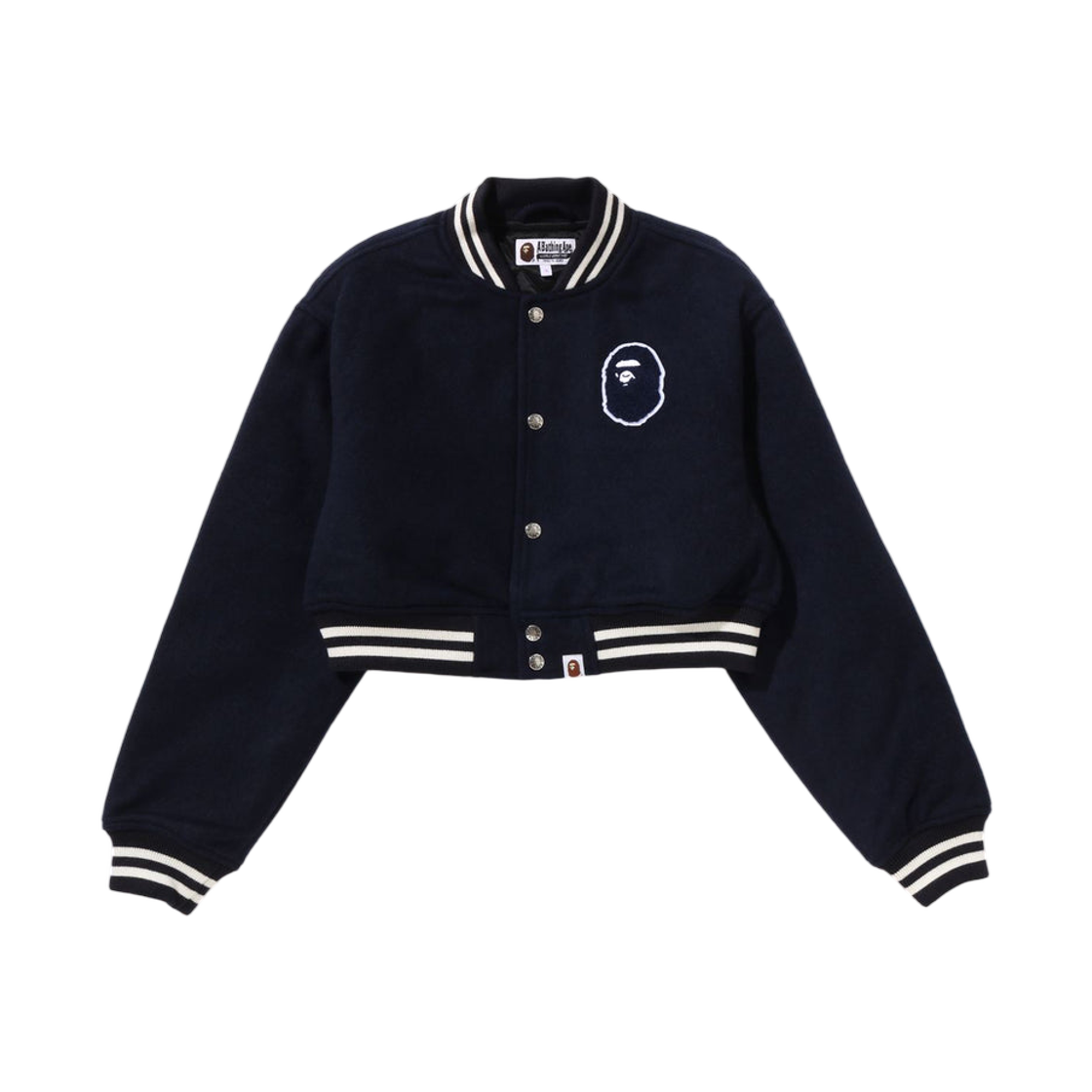 (W) BAPE A Bathing Ape Cropped Varsity Jacket Navy