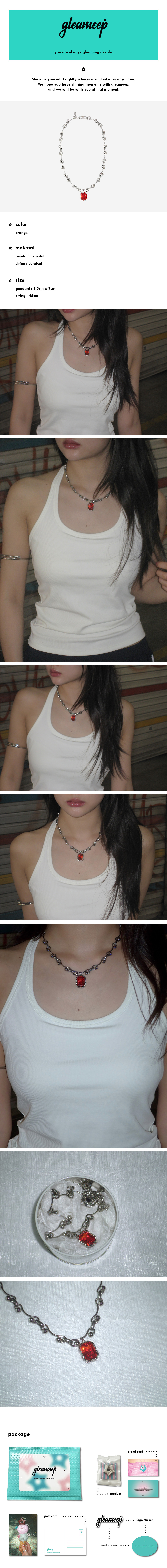 mystic wave jewels necklace는 웨이브 형태의 볼드한 체인과 빈티지한 크리스탈 펜던트 그리고 후크 옆에 달린 글리밉 로고 펜던트가 포인트인 제품입니다.
